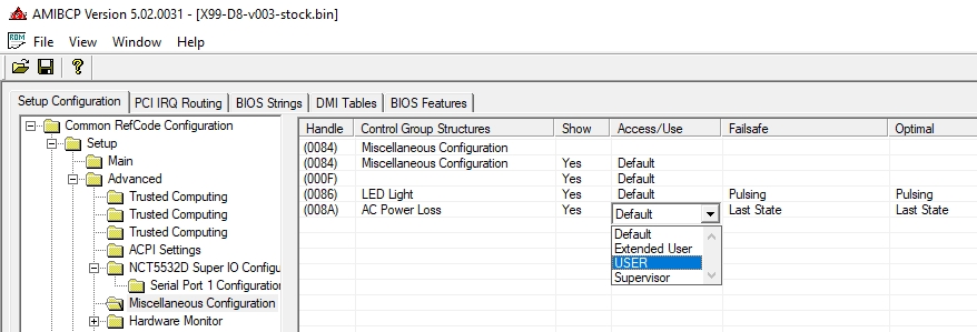 Всем привет. Не смог найти в своей материнке klissre d8 (ad12) вкладку в биосе "Restore on AC / Power Loss", (Включение платы при подаче электроэнергии). Все перелазил, все вкладки(на другой китай матери без проблем нашлась). Версия биоса от 15.04.20 (вроде как 0.03). Видел еще есть за 19год на эти материнки. Думаю что дело в прошивке биоса(хотя она стоковая). Может тут хозяева подобных матерей сидят, есть ли у вас такая настройка в биосе? Либо кто уже сталкивался с подобным, есть решение?
