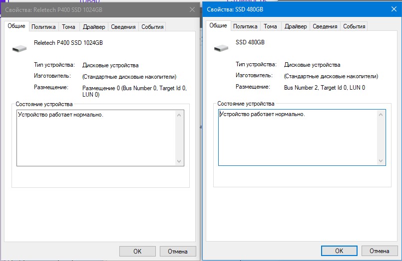 В итоге, если через диспетчер устройств посмотреть, то в моем случае оказалось, что 2 диска имели одно и тоже размещение: Размещение 0 (Bus Number 0, Target Id 0, LUN 0) Размещение 0 (Bus Number 0, Target Id 0, LUN 0)