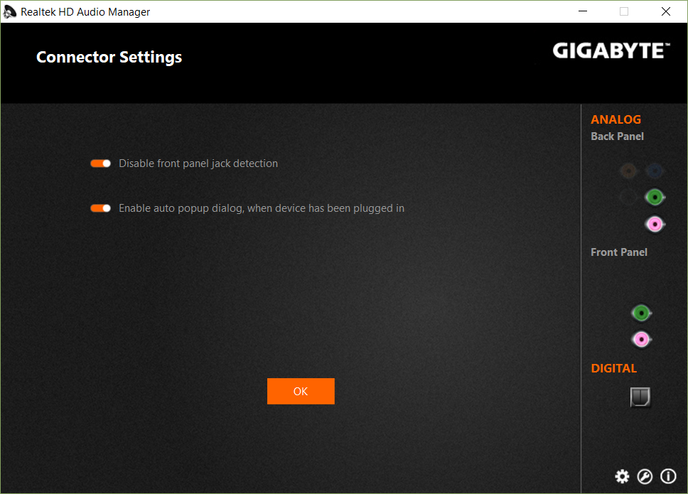 Звук продолжил подлагивать и похрюкивать, хоть и не так интенсивно. Победить удалось отключив определение подключения передней панели (по какой-то причине звуковая карта отдавала приоритет ей и периодически "теряла из виду" подключение на задней панели). Очень странно, на прежних чипсетах с Риалтеком никогда такого не было.
