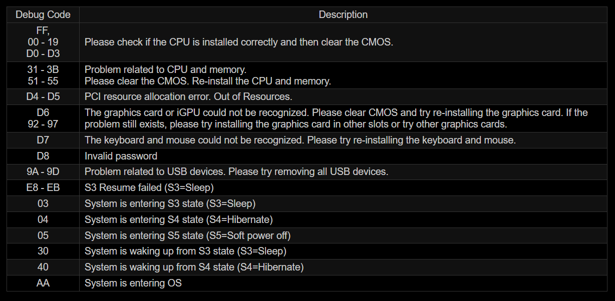======================================================= Пример настройки БИОС 12500+B660M PG Riptide- версия БИОС 2.02 (Beta) 4800_3466 оперативная память пользовалась- Crucial Ballistix 2x16GB DDR4 PC4-25600 BL2K16G32C16U4B https://disk.yandex.ru/d/pcXsLvF8WDq2GQ ======================================================= Оперативную память ставить строго в слоты А2 и В2, если планка одна то в В2!!!!!! ======================================================== Драйверы, какие ставить, по порядку? INF driver- обязательно. Intel Management Engine driver- обязательно. Realtek high definition audio driver- обязательно. Realtek Lan driver- обычно винда ставит свой, проблемы нет, можно по желанию обновить с оф. сайта. Intel Rapid Storage Technology driver and utility- можно ставить, но не обязательно. Nahimic3 utility- приложения для настройки эффектов звука, как по мне удобная штука, но по желанию, ставить не обязательно. ВСЕ!!! Больше ничего ставить не нужно, никаких приложений и прочей требухи, что предлагается на оф. сайте. ======================================================== Таблица Debug LED Troubleshooting Checklist