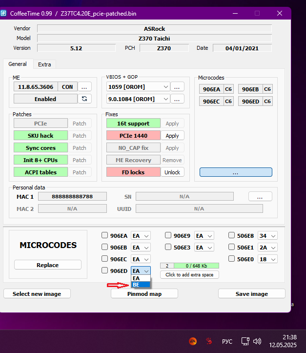 Добавлено спустя 4 минуты 37 секунд: Такой вопрос мужики, в биосе зашит вроде один бы как, микрокод 906ED, стоит qtj1. Подвернулся камень 9900k за даром, степингом SRELS он вроде бы P0, придется выпаивать чип, перешивать? Или как вообще из под винды можно ли что-то намутить? Плата fatal1ty z370 professional gaming i7. Если честно уже даже не помню, как из под винды дамп снять, посмотреть его