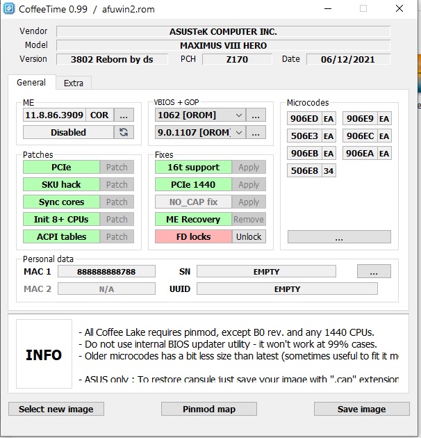 CoffeeTime 0.92 [ Я.Диск ][ Mega ] Автор: svarmod Эта версия не содержит автомодификации, все изменения в биосе проводятся "вручную"; предоставляется без каких-либо подсказок, с GUI, новыми фишками и прочими удобствами. Больше информации о новой версии на [ Страница 407 ]