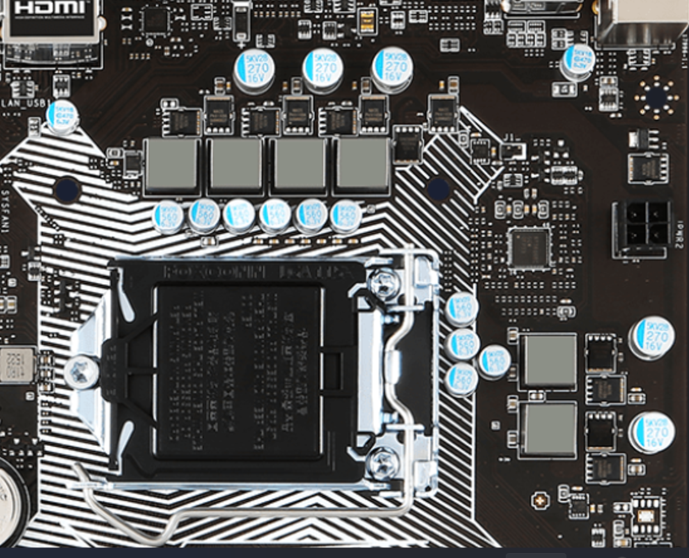 Как и у ASUS H110m-r всего три фазы для питания процессора. И тоже мосфеты расположены хаотично - колхозить что-то будет сложно. Это платы для Celeron/Pentium/i3 с индексом T. Шестиядреный мутант, конечно, поставить можно, но с обязательным обдувом зоны VRM и ограничением TPD в 65/50 Вт. В целом, это неинтересно, потому, что раскрыть потенциал процессора не получится, а ОЗУ, которая заведётся на 2300-2500 МГц дополнительно ударит по производительности. Завести память на 2600-2800 будет, скорее всего, сложно. В итоге, "для поковыряться на даче" - идеальный вариант. Но практического смысла не так много.