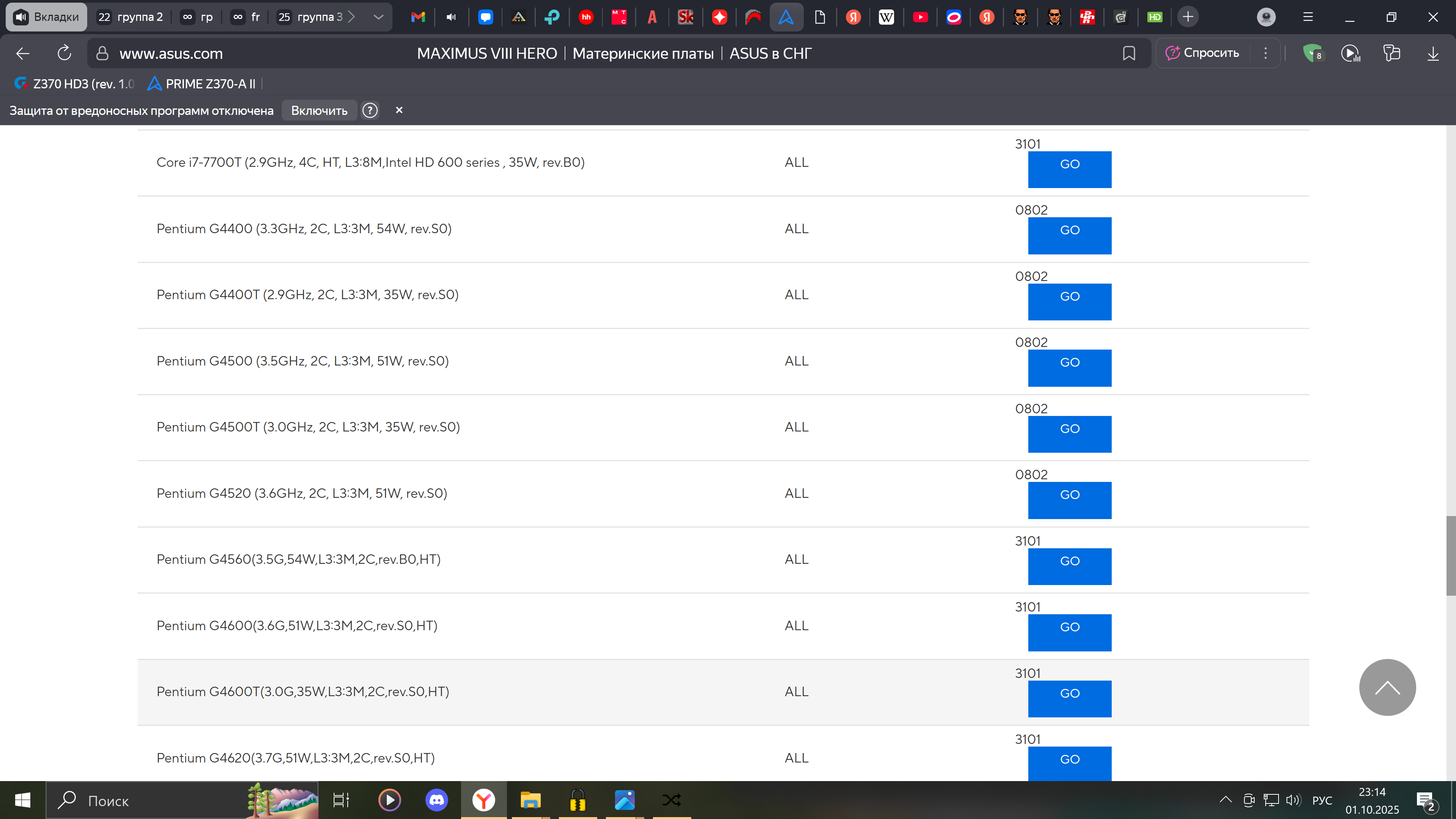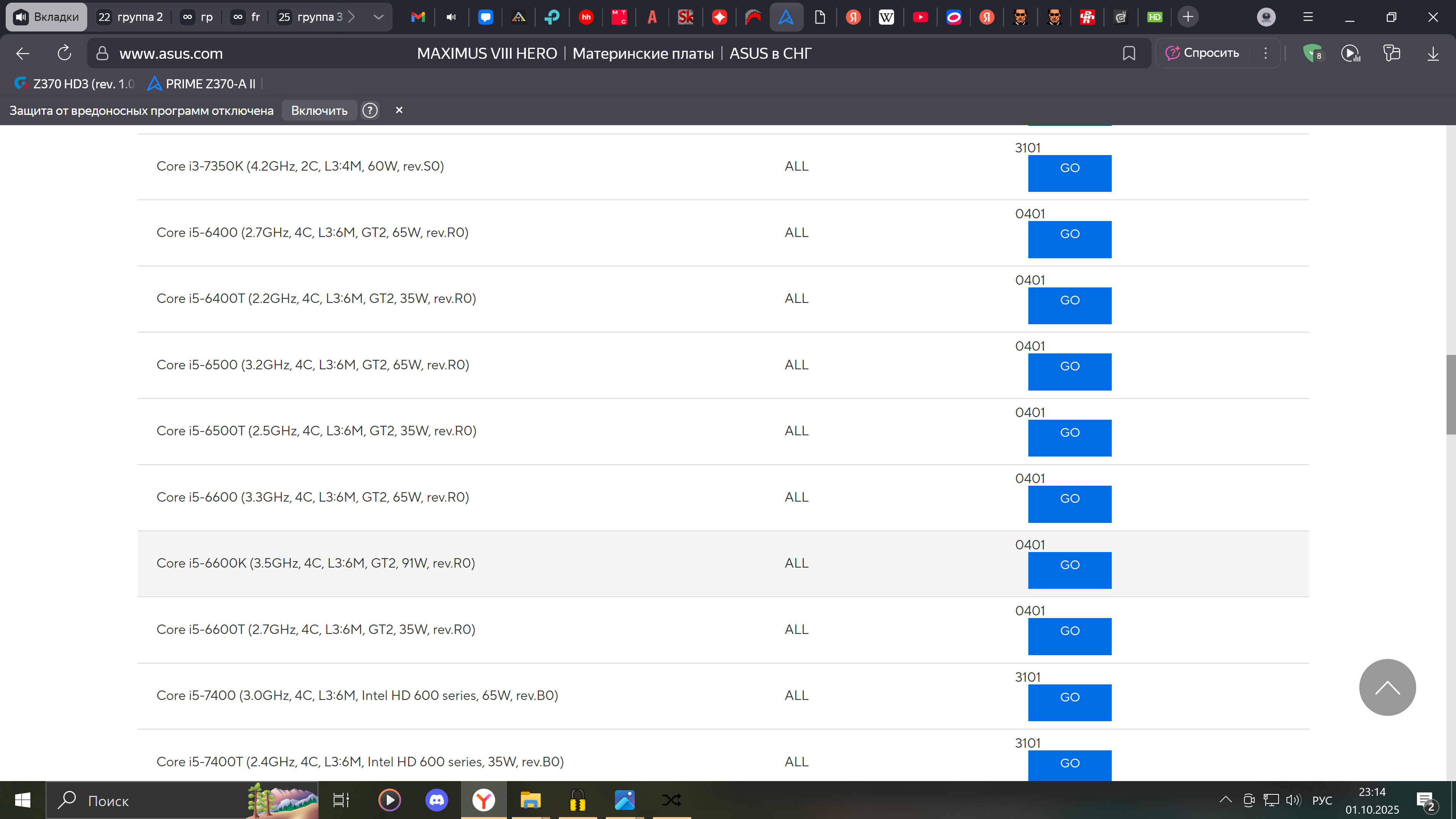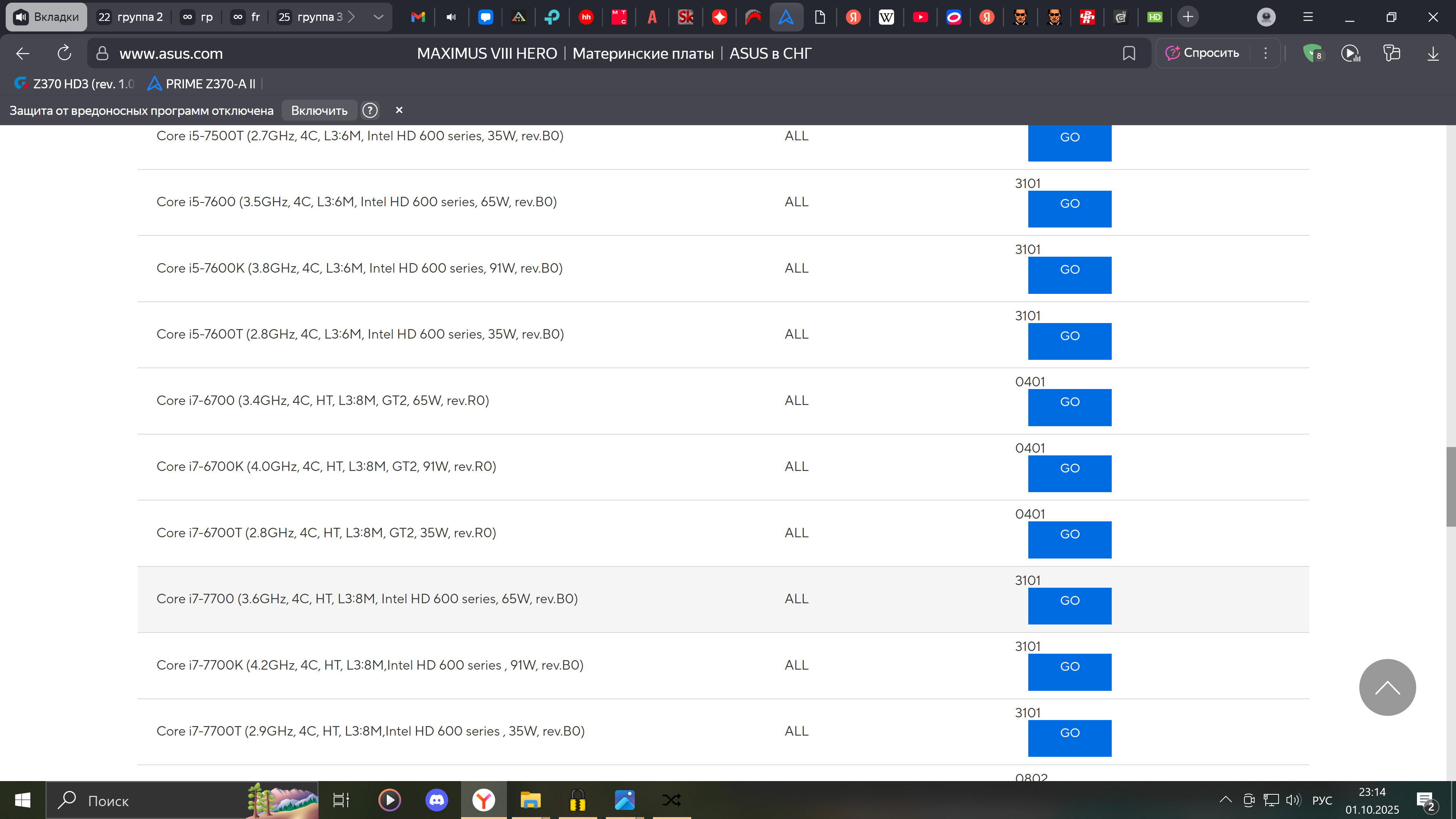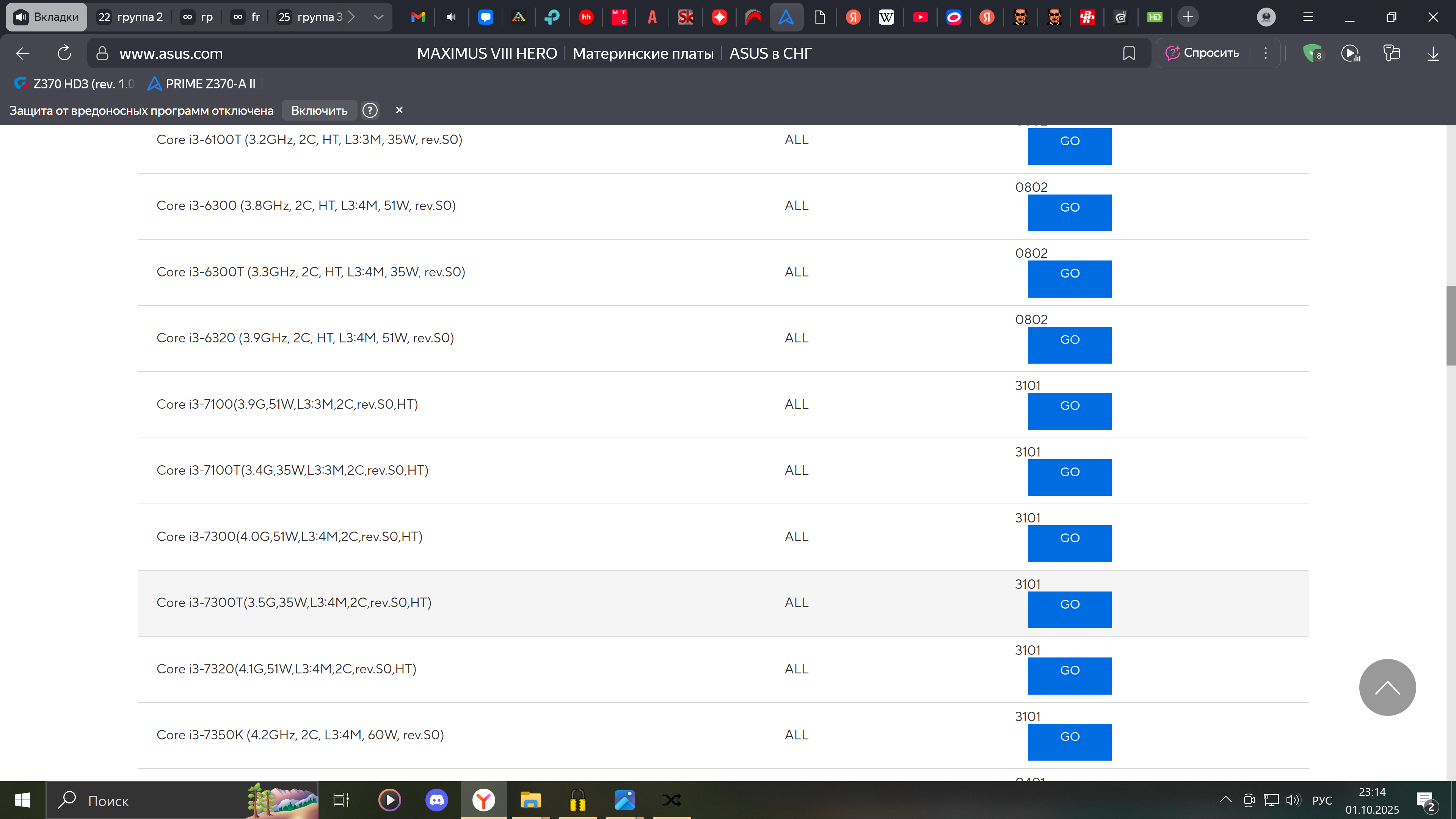 Есть 4 ревизии процессоров Coffee Lake, каждая требует определенный микрокод. Обратите внимание, что некоторые модели существуют сразу в нескольких вариантах. Полный список можно посмотреть тут.