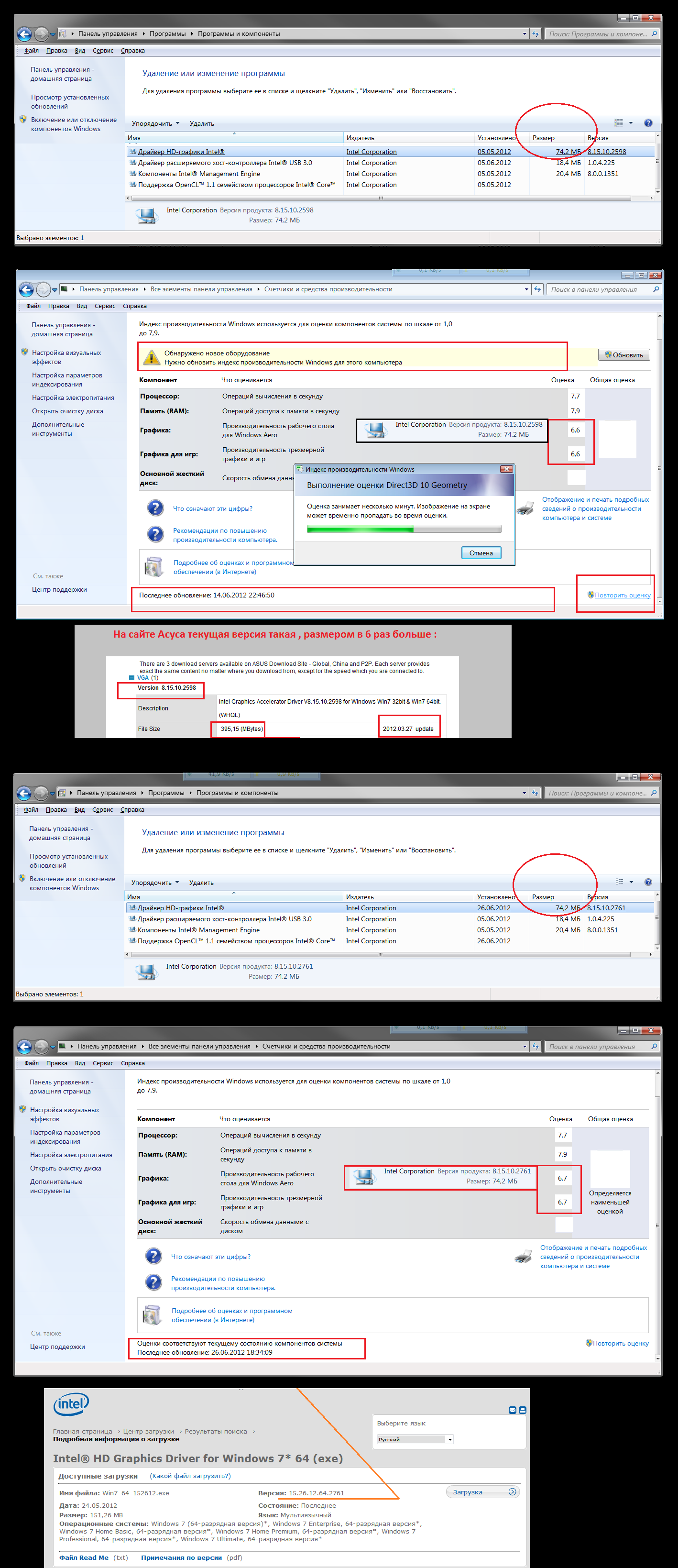 Leo_99, ставил пару раз с WUpdate драйвер на встройку, он там реально раньше появляется, чем на серверах Intel. А с ASUS вообще драйвера не ставлю, только прошивки. Но скорее всего (по датам) это один и тот же драйвер, либо на WU билд 2696 Вообще, рекомендую тупоэтот2761 ... с 2696 у меня память утекала в D3D-приложениях (правда в 32-разрядной шиндовс).