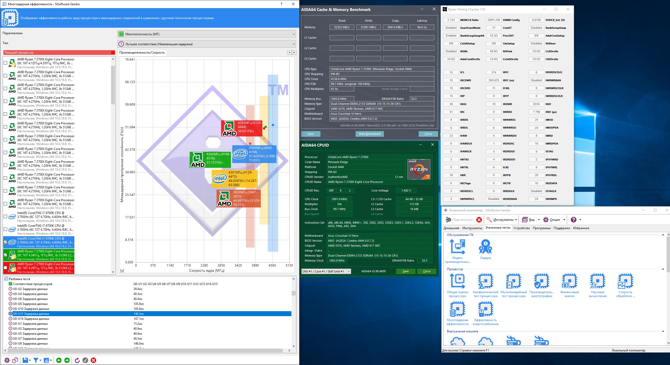 * офсет у мси как не работал так и не работает, постоянно 1,455 лупит в максимуме * память hynix cjr раньше спокойно стартовала на 4000, сейчас это голубые экраны. На 3200 я не могу стабилизировать память, но в диапазоне 3466-3800 все отлично.Agesa 1.0.0.4c была лучшая для разгона, имхо * заметил 5% спад фпс в SWBF2 и AC:Odyssey (минималка пострадала и средний). С моментами 0.1%, не все однозначно , возможно их стало больше. Лично для меня в онлайн шутере это ощутимо. Ноги сего растут из-за возросшей задержки межядерной связи и падение ПСП инфинити. Исправят или нет для меня загадка , но англоязычные и немецкие сообщества уже уведомлены * поймал с 10ток выпадения компа в непонятный режим, когда просто тухнет экран и спадают обороты на вентилях, реакции ноль у компа даже после перезагрузки. Нечто напоминающее компьютерную кому. Выходит он из этого состояния после обесточивания * на аиды внимание перестал обращать внимание, замеры килобобиков в вакууме , сандра более показательный тест * на кросхейре к примеру улучшилась точность измерений датчиками напряжения, в связи с этим некоторые пользователи отмечают о снижении рабочего напряжения. Мне кажется это плацебо, проблему изначально создала асус а теперь ее решила. Во всяком случае нужно замерять мультиметром показания старого и нового биоса * у асуса появилась 0.0.7.2, улучшений нет , межядерная задержка стала на 2% ещё хуже * из хороших новостей - скаляр PBO вернули и все платы 350 получили поддержку Zen2