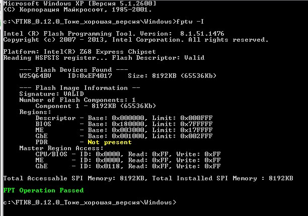 Добавлено спустя 8 минут 24 секунды: Блин на сколько я помню я обычно прописывал fptw64 -f -bios biosregion.bin, он пишет fptw64 -f biosregion.bin -bios