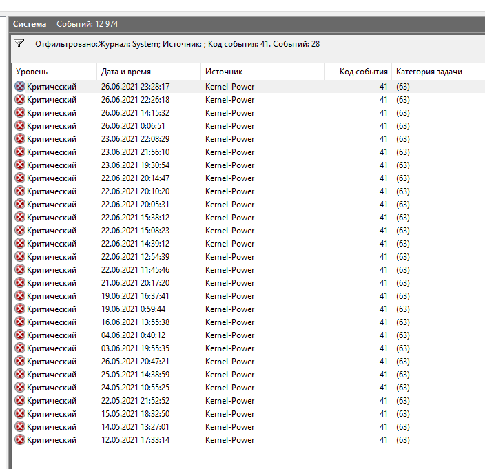 В мае было около 10 ребутов. В июне ситуация ухудшилась, это видно на скриншоте журнала ошибок.