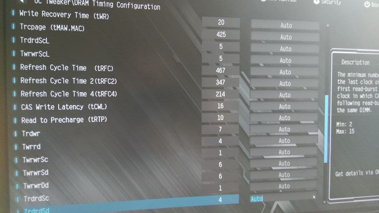 в приложении скрины вкладки oc tweaker. Тайминги недоступны, если не выставить частоту вручную. Выставил 2667, и сделал 3 скрина настроек таймингов. Предположу, что именно с ними память работает, так как мать сама выставляет частоту 2667 (такая частота написана на плашках)