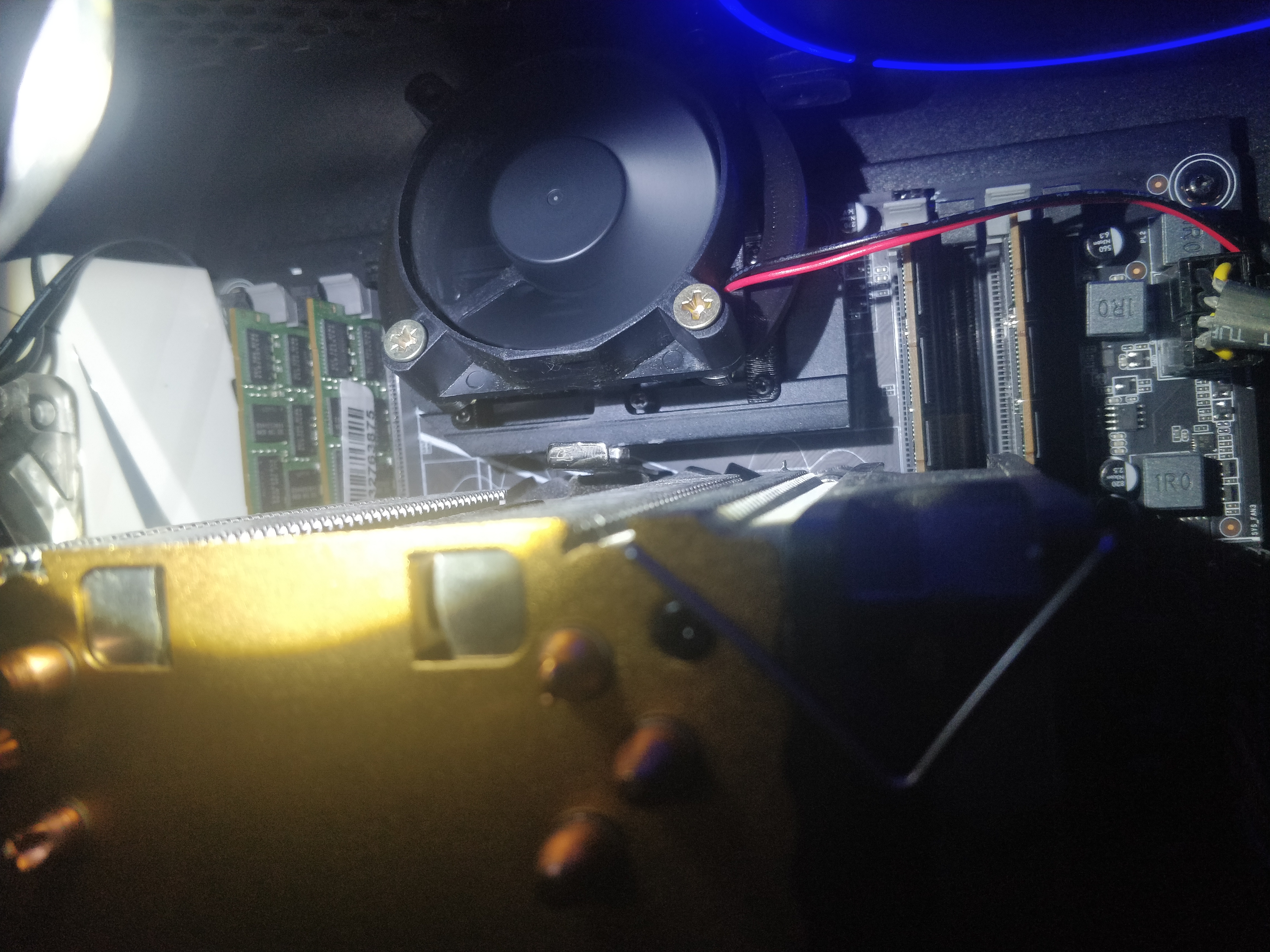 А не проще и дешевле было поставить на выдув 120мм кулер в корпусе сверху над зоной VRM и заколхозить картонку для направления потока воздуха от VRM наружу (по желанию).
