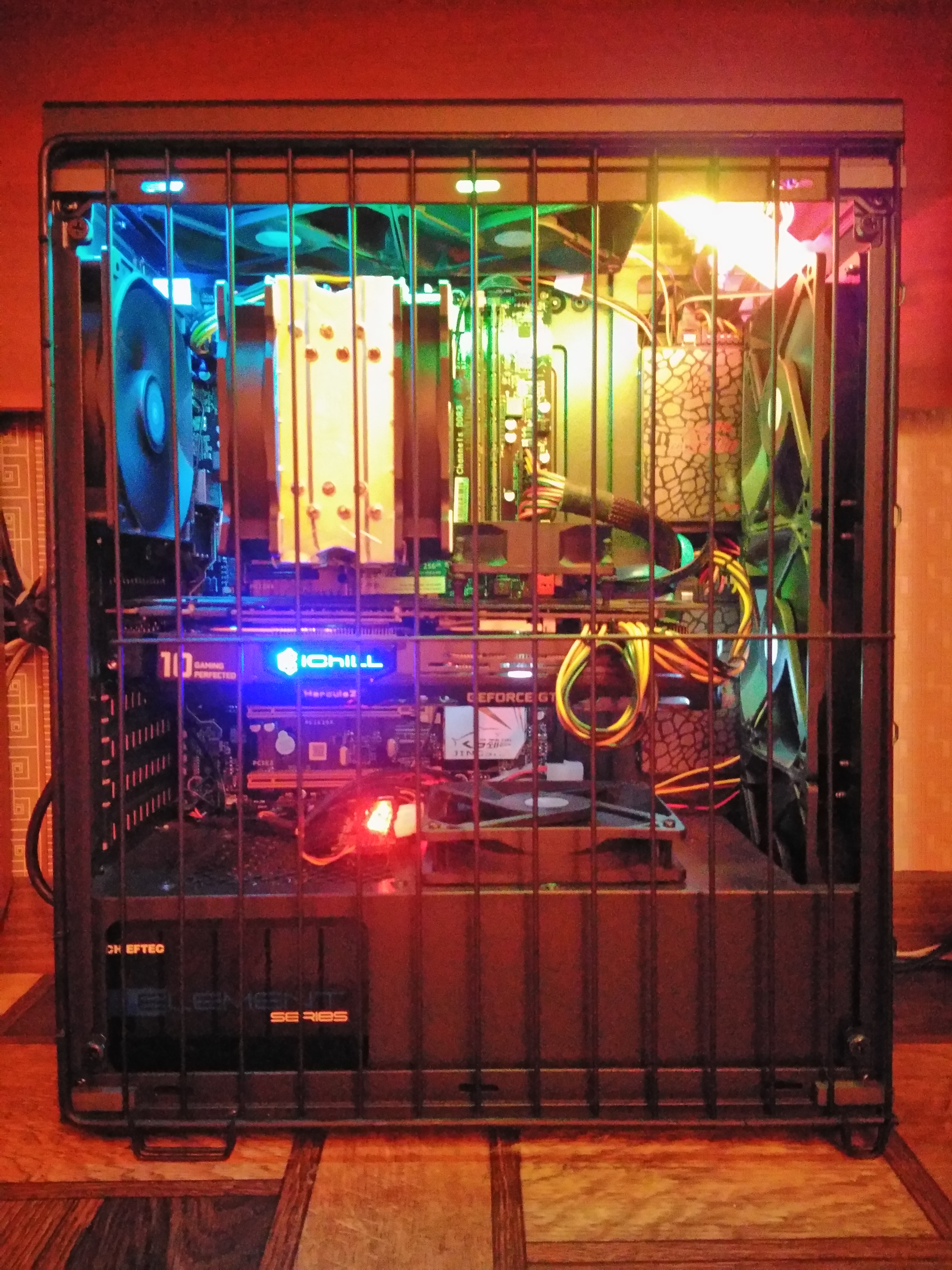вопросы. 1. снизу стоит куллер он как я понимаю на видеокарту дует? 120ка вроде. 2. Сверху перекрывая разъем 24 pin ATX стоит вроде 80ка. она куда дует и зачем? На видео? 3. Я насчитал 7 вентиляторов 120 корпусных, 2 процессорных, 1 80ка ну и в б.п. стоит 140ка но ее можно не считать. вопрос как по шуму себя ведет весь этот аэропорт? 4. Смотрю все провода под стяжку и слева за стол?