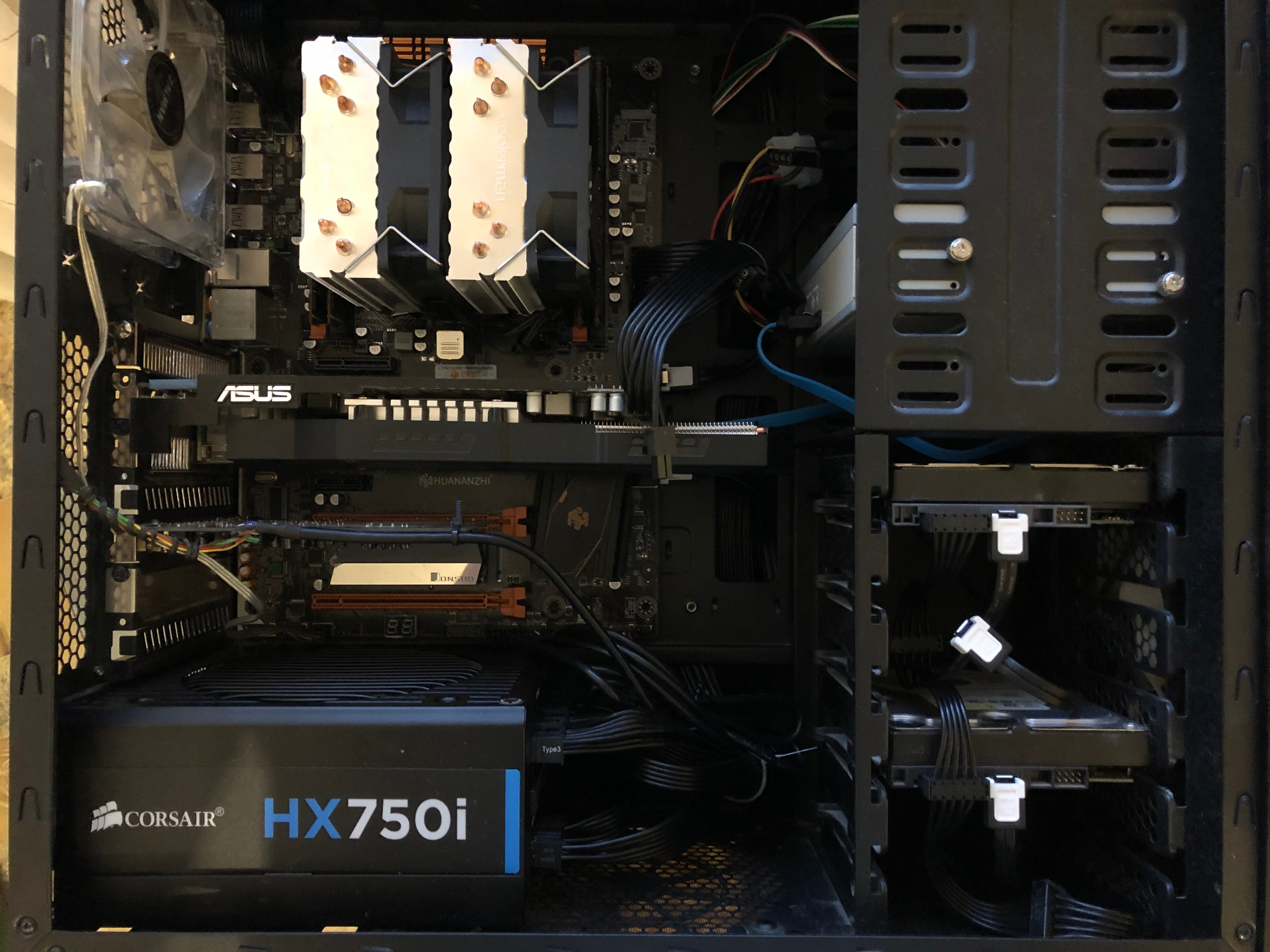 При такой красоте наверное стоило бы 1080Ti вертикально поставить. и получился бы тоннель для хаба X79