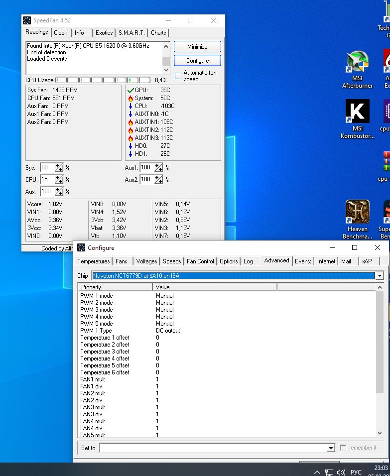 всем привет. озаботился я хорошим охлаждением и продуваемостью системника. воткнул кучу кулеров, т.к. мать х79-р3 у нее только 2 разъема для кулеров. я заказал хаб с алиэкспресса, хаб берет питание с сата разъема, сигнал оборотов с матери и раздает его на 10 кулеров. в биосе (мод 3,4 от xuz) регулируется только обороты кулера проца, обороты системного разъема не регулируются. Поставил програмку speedfan, думал настроить через нее. Но там обороты системного кулера так же не регулируются, только кулера проца (режим управления поменял на ручной). Думал хаб повесить на разъем кулера проца и все кулеры, в том числа и кулер проца, зацепить на него, но спидфан некорректно видит температуру процессора(постоянно показывает -103 градуса), афтербурнер температуру видит корректно. Как настроить скорость вращения кулеров в такой ситуации? шум просто сводит с ума.