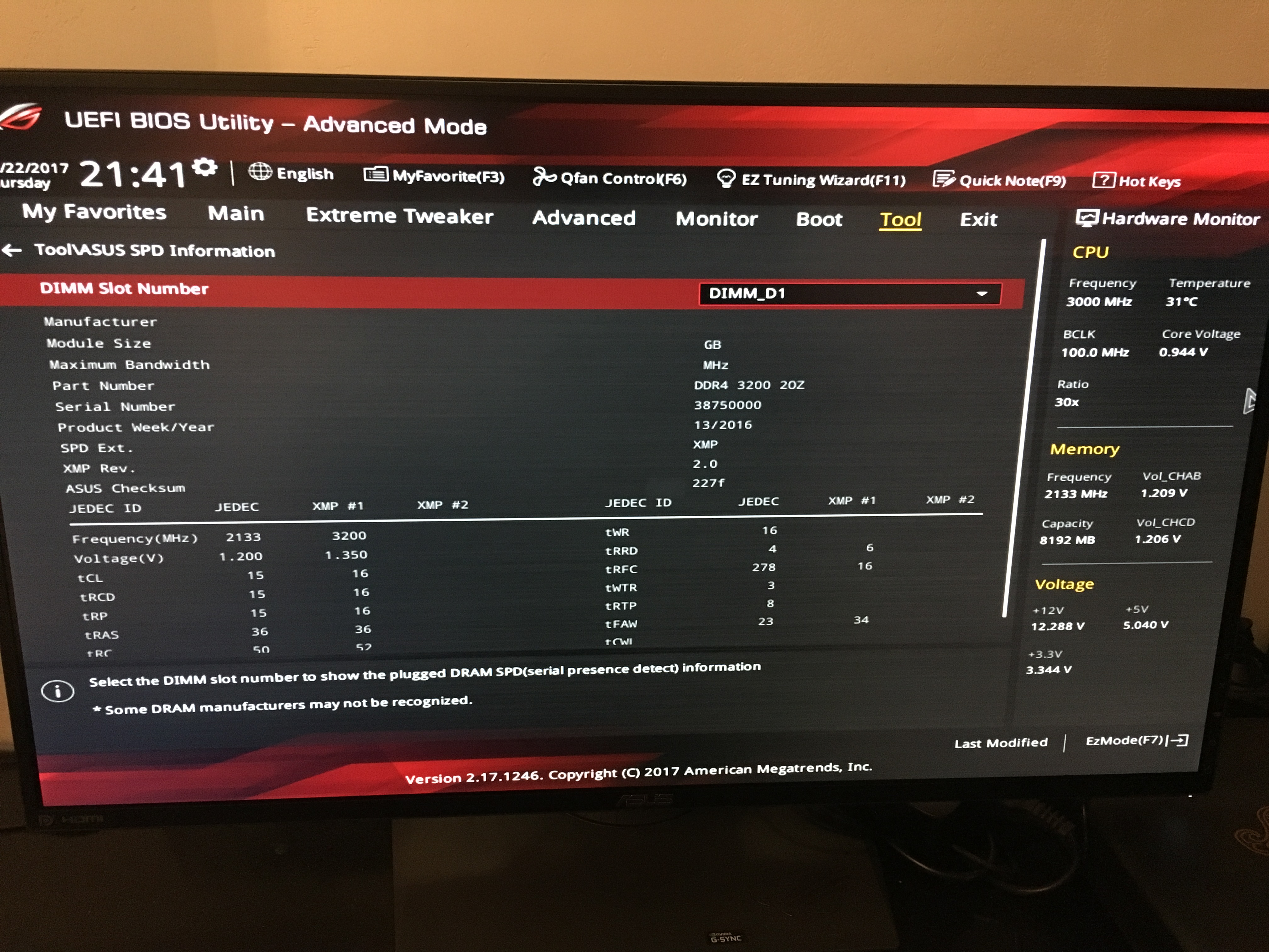 Не работает 1 канал памяти, D1. Точнее внезапно перестал работать. Планки проверял, все рабочие, проблема только в этом слоте. Система стала выдавать POST ошибку BD с планкой в этом слоте. Что это может быть? Материнка или проц? Если сделать сброс биоса - можно зайти в биос и утилитой SPD посмотреть - вот что показывает (см скрин). Те часть данных показывает, но объем нет. Уже была когда-то похожая проблема, но тогда именно одна планка глючила, тк с ее заменой стало все ок. Тогда процессор другой был. Подскажите что делать, мать гарантийная, правда я водоблок поставил, не знаю, влияет на гарантию или нет.