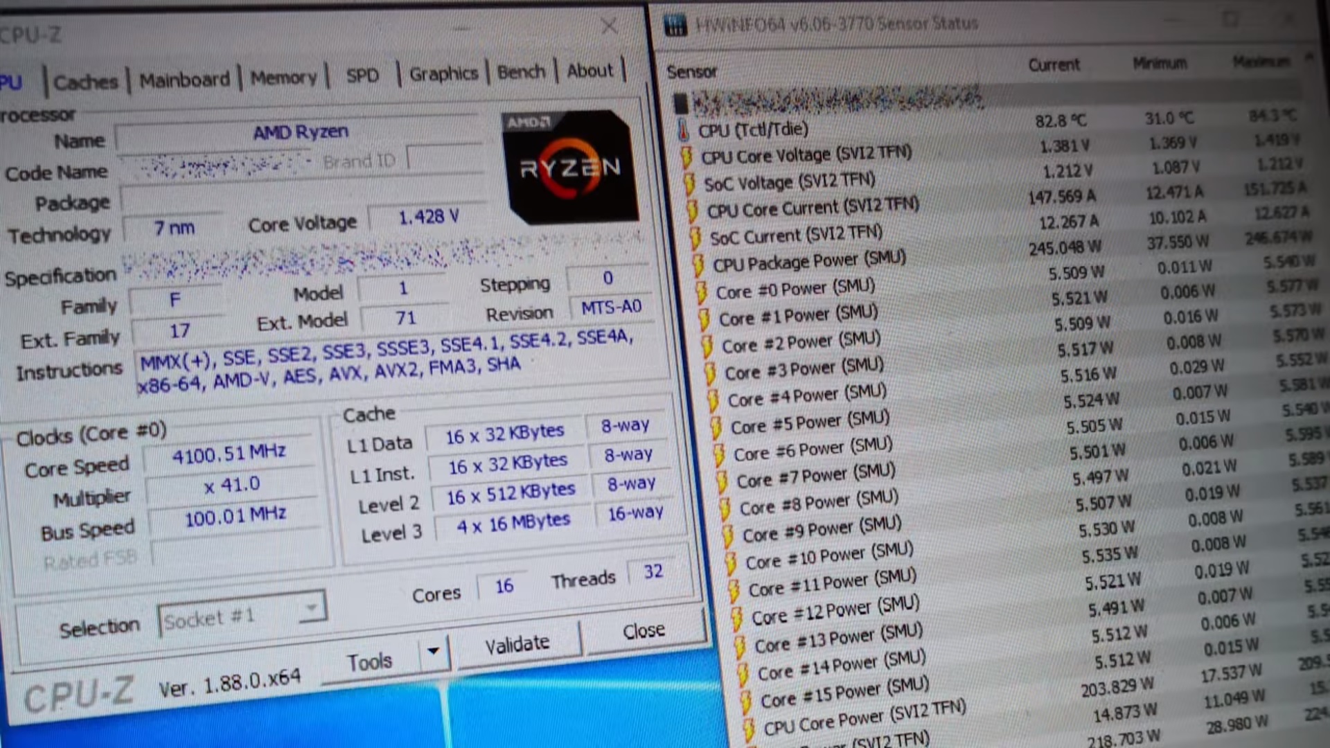 Инженерники как правило на 25 процентов больше потребляют, ну и это 16 ядерный процессор, а не 8 и 12. Да и странное какое-то напряжение и потребление для 4.1GHz, скорее всего aida врёт.