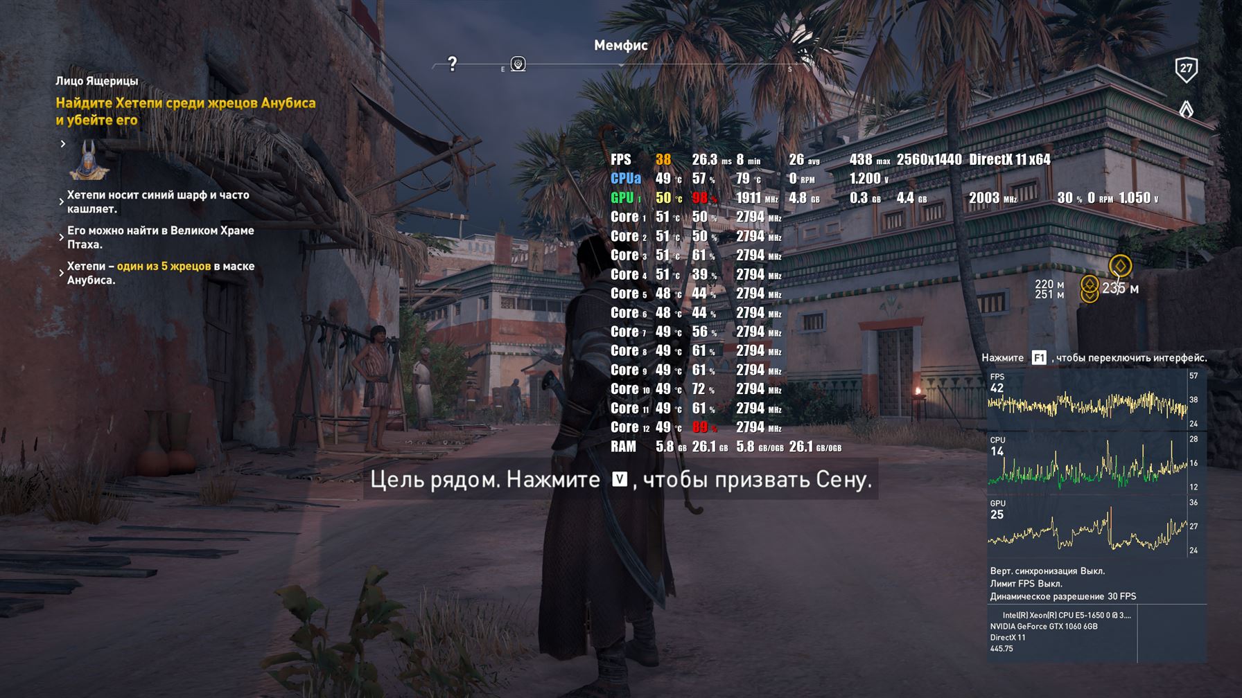 Я с 2014 года не играл в игры и сейчас поэтапному прохожу их. На данный момент играю в Origins Статистику по всем драм не вывожу, только самого загруженного. Это третье значение слева в строке CPU Качество графики Высокое