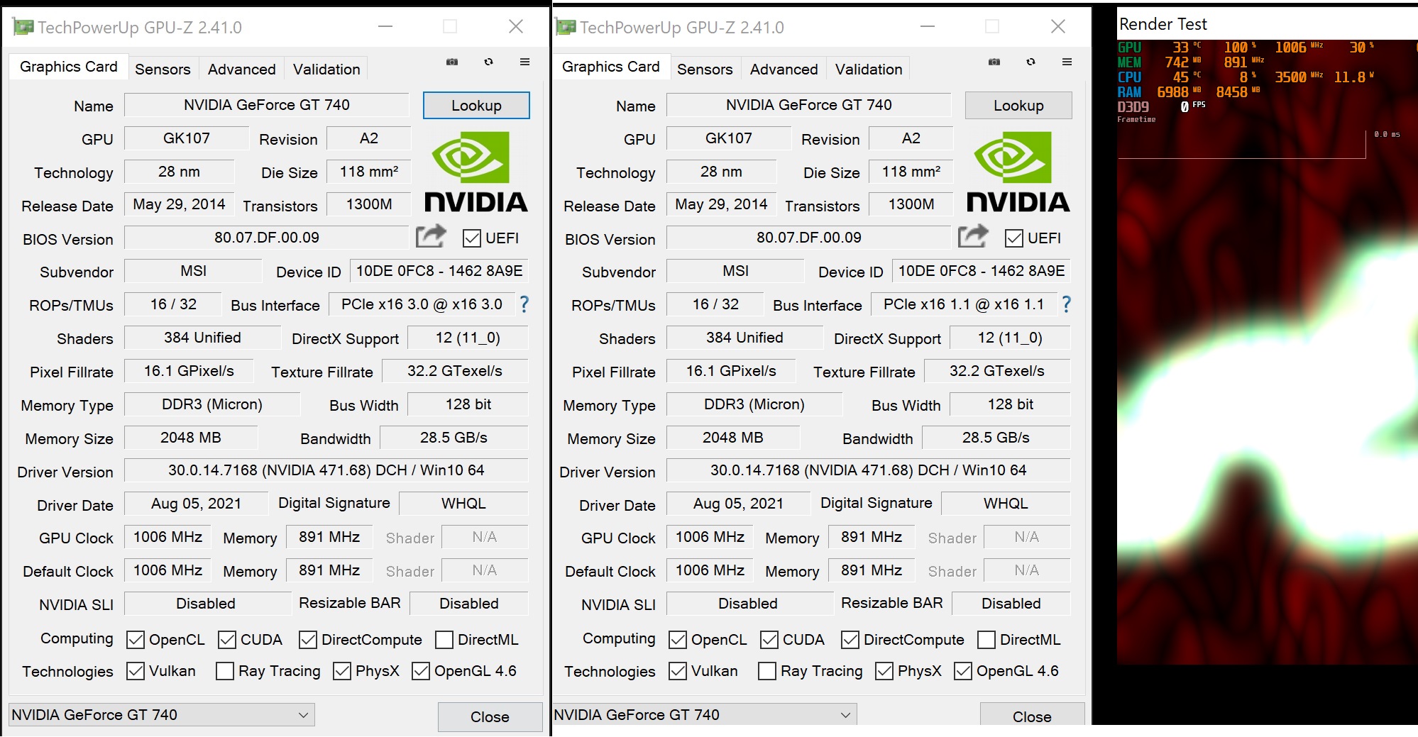 Я запускал рендер Хеавен, в Gpuz есть свой тест рендер, рядом с показателем pci, но при запуске не меняется, 1.1 всегда, на плате qyiida с теми же комплектующими такого нет, там 3.0