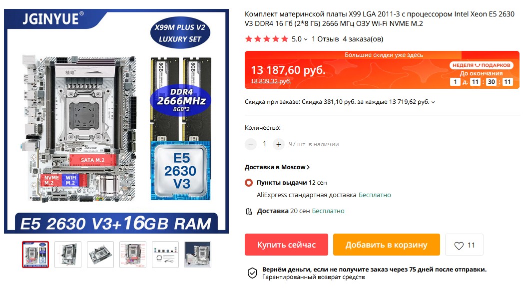 2.VEugene Продаю комплект вот такой: https://aliexpress.ru/item/100500314818 ... 1667062299 Только камни 2666 v3 Состав: HUANANZHI X99-F8D LGA2011-3 Xeon E5 2666 v3 - 2 шт. Кулера для CPU - 2 шт. 8G DDR4 2133 REG ECC память - 2 шт. 128G M.2 NVMe SSD (китайский) - 1 шт. Комплект был запасной, куплен целиком мной лично, заменены в нем только камни (изначально были 2690 v3) Все проверено, запускается. Цена 22000 руб. В Москве.