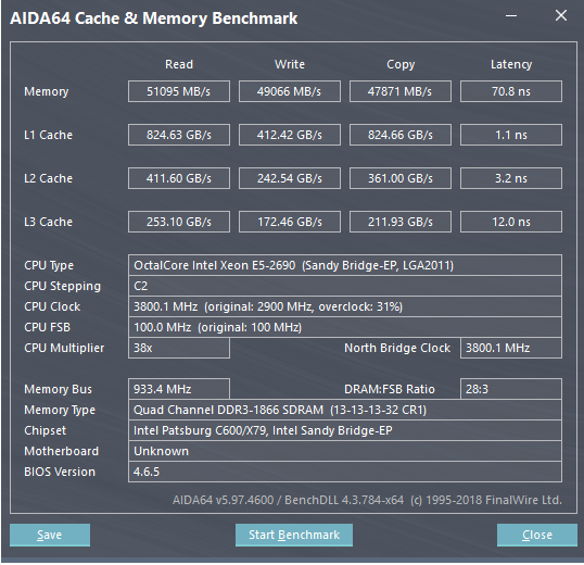 SuperVader интересно по его мнению латентность какая нормалтно должна быть? может он сравнивает с DDR4 2666 или 3000? большая это когда больше 75ns, да и то надо смотреть в тех же играх есть или нет фризы. а для 1866 с 12ыми таймингами 6х ns по моему норм. конечно не мешает поднять копирование и частоту до 2133, но здесь могут проблемы быть, нелюбая память может работать да и контроллер памяти 2680 может давать сбой, хотя такое редко.