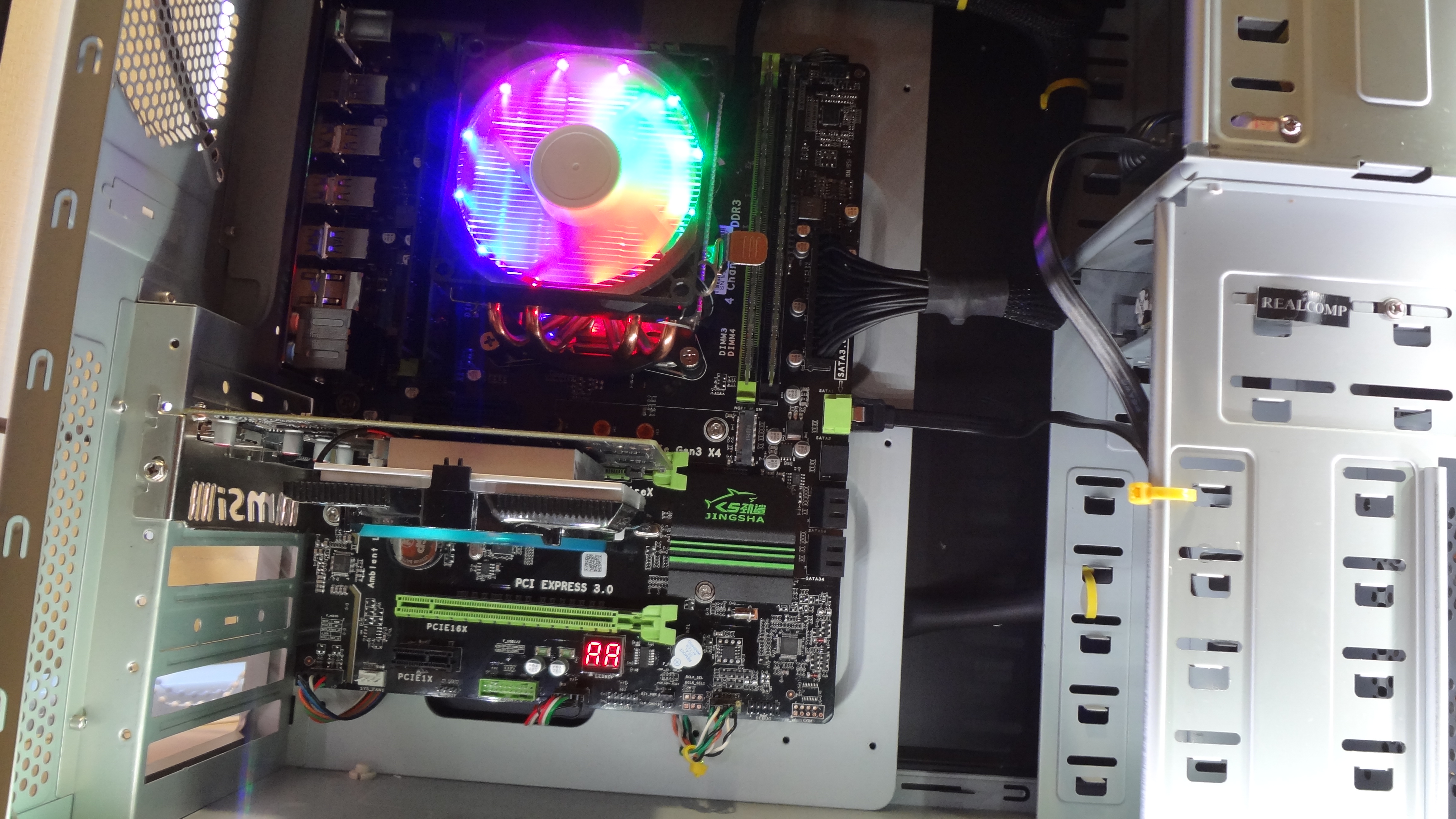 Собирали другану бюджетный медиа пека, чтобы ютуб в 4к крутить без проблем, и надо было подешевле всё. В общем выбор пал на е5 2640 с GTX1050 (т.к. она может в аппаратный VP9), плату взяли джингшу зелёную (исключительно из опасения, что более дешевая на 300 рублей плешхд придёт без переходника на АМД крепление вентилятора), блок питания биквайт, на 400 по-моему, и кулер за 900 4-пин с алика на 4 теплотрубки. Память лашуно за 1600р 16гб 4х4 1333. Дело было в начале февраля. Всё отправили, а память долго не слал продавец. В начале марта отменили заказ на память, и оказалось, что памяти по такому прайсу кроме как у этого продавца нет. За неимением вариантов пришлось заказать кит кингстон за 2000 рублей, 16гб, 4х4. На фото были чипы хёникс.