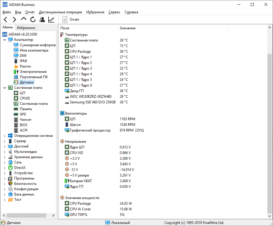 Чисто для статистики размещу свои показатели с Аида64 с датчиками и тестом памяти. Кулер ID-COOLING SE-214L-R не крутит на максимум 1800 оборотов, но и не держит в минимальные 600 оборотов. По памяти знаю есть косяк, у меня 2 планки памяти по 8Гб. Просто когда заказывал дешман-плату, за 2400 руб, прод оказался разводилой и пришлось добавлять на мать из конфига, а память уже заказал. Понимаю, что 4х канал был бы интересней + прошивка для снижения таймингов, но вдруг что пойдёт не так, не хочу рисковать, да и по ценам менять 2х8 на 4х4 будет дороже, чем заказывал тогда.