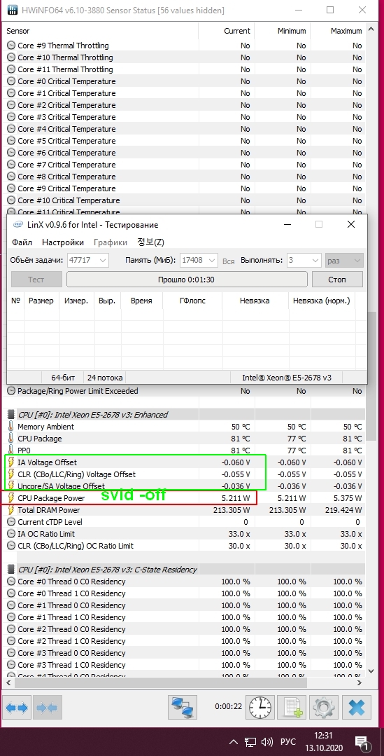 Вернул назад AT011 и в лимит снова начал упираться уже на 3.3ггц (точно дело не в биосе), и время в биосе верное стало (да железно дело не в биосе), даже напряжение смещения начало показывать в любой программе (даже не упоминайте проблемы с биосом).