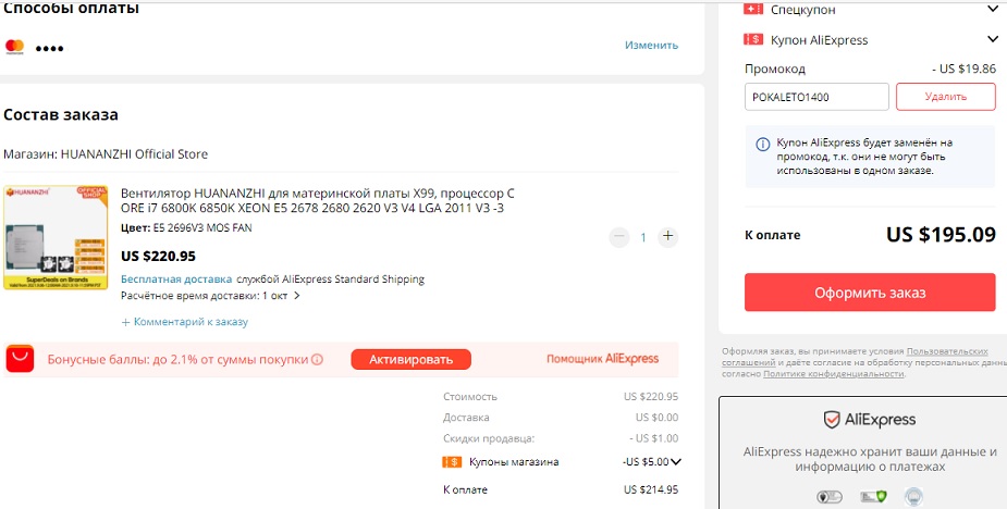 Нашёл в инете другой промокод для моей страны. Заказал. Надеюсь что пришлют именно E5-2696v3, а не вентиляторы за $200 Вроде как E5-2696v3 это наикрутейший проц для X99, 18-тиядрёный, до 3.8GHz да ещё и DDR3 поддерживает