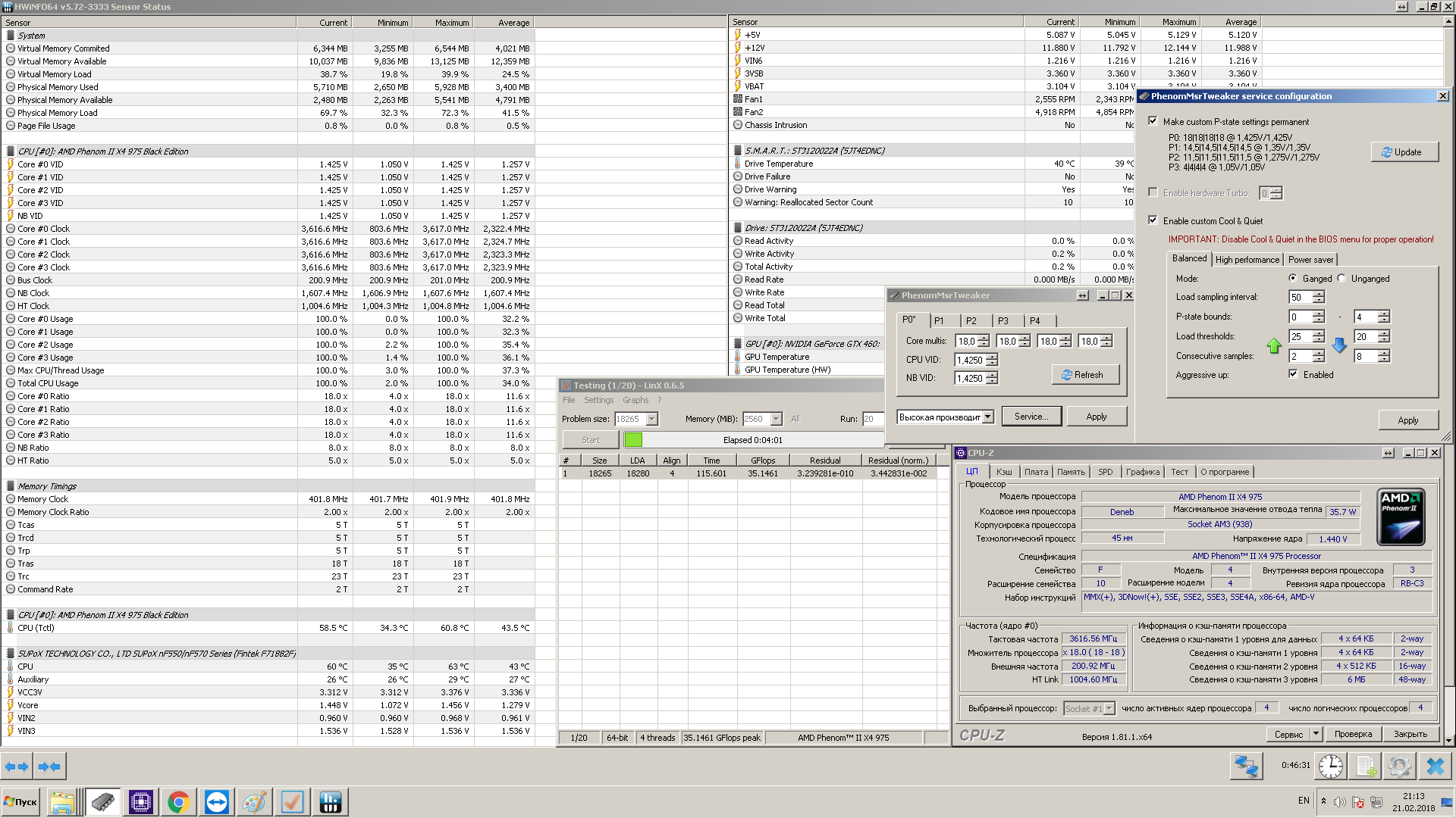 Добавлено спустя 1 час 12 минут 29 секунд: В общем ребята, думаю можно подвести итоги, итак: Удалось всё таки корректно запустить AMD Phenom II X4 975 BE (HDZ975FBK4DGM) Все 4-ре ядра работают на частоте 3.6 GHz, множитель разблокирован, можно гнать только в путь Через программу PhenomMsrTweaker повысил множитель, на скриншоте видно какие настройки использовал. Ссылка на последний модифицированный BIOS от 7 мая 2010 года на основе BIOS'а от 14 января 2008 года: https://drive.google.com/file/d/1N-X18i ... HER1bGlp-k https://yadi.sk/d/4plLph1w3Rr2mt Ссылка на последний официальный BIOS от 14 января 2008 года: https://drive.google.com/file/d/1TFrdib ... A8xEHlifW4 https://yadi.sk/d/MxccyNwN3SegwB Ссылка на прошивальщик: https://drive.google.com/file/d/1YLMVYW ... VgEBaMgi7S https://yadi.sk/d/xvpRoWEL3SehFX Так же имеются процессоры AMD Athlon II X4 640 (ADX640WFK42GM) и AMD Athlon X2 7550 (AD7550WCJ2BGH), работают изумительно, без танцев с бубном. З.Ы.: Если кому интересно, можно сделать сравнительный тест, и сравнить имеет ли смысл кэш 3-го уровня, по сравнению с AMD Athlon II X4 640