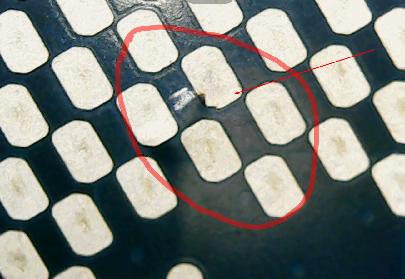 мать с только подключенным БП запускается с индикацией FF ставлю проц - выше озвученная проблема. смотрел на проц под микроскопом нашел мелкие вздутости - фото прикрепляю.