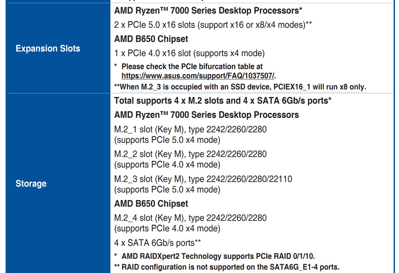 ROG`и топовые как минимум. У них так же как на B650E-E, только видимо с чипсета уже 2 x4 4.0 через переключатель. Есть и иные реализации 4ёх NVME на B650E - (B650E AORUS PRO X) типа, 8+4+4 (или 16 на GPU) - что блин странно, если 5.0 SSD будет хоть один, то 16 линий на карту уже не будет. Наверное должны быть и более гибкие и самые топовые, где 8+4+4 (или 16 на GPU) + 4, помимо x4 4.0 напрямую и x4 4.0 с чипсета.