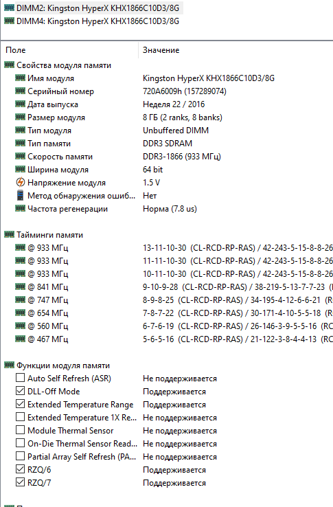 DonCarleone, будут работать любые 8-ми банковые планки DDR3. 4-банковые обрезки DDR3 не встречал, да и в спецификациях на десктопные процессоры intel не видел возможности поддерживать такую память. Но DDR4 на десктопных процессорах может поддерживаться и с 8-ю банками, хотя это неполноценная память (должно быть 16 банков). DDR4 c 8-ми банками - это обычно модули с объёмом 4 ГБ (этим грешат и Кингстон, и некоторые другие производители). У Вас DDR3 с достаточно большим объёмом 8 ГБ. Да и на скрине видно, что 8 банков. Так что Ваши модули должны работать без вопросов. P.S. У DDR5 штатно должно быть 32 банка (это для общей картины).