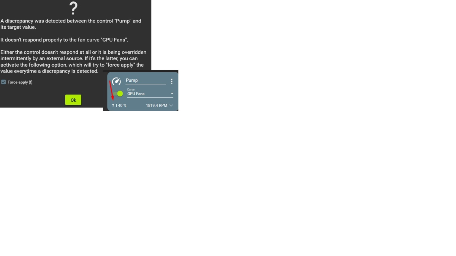 Fan control не может подхватить управление оборотами помпы. Кто знает как лечится? Суть. Имеются: материнка Aero G z790, биос последний, AIO Galahad 360, Fan Control (v155, последняя). Ставлю Fan Control > запускаю калибровку > находит корпусные вертушки, 2 штуки от ГПУ, помпу > обороты на всех сенсорах есть > вешаю на сенсор с помпой кривую (под помпу есть разъемы sys_pump5 и sys_pump6, проверял оба) > появляется вопросительный знак и описание, что не может взять управление оборотами. В самой материнке для всех разъемов вертушек (sys_fan 4шт, cpu_fan. cpu_opt, sys_pump) в биосе можно задать настройки: - режим работы (тихий, баланс, макс обороты, вручную). - режим управления (авто, PWM, вольтаж). - Fan stop (enable\disable). Я пробовал режим работы ставить вручную + все варианты режима управления. Fan stop тоже включал, выключал. Разницы никакой. Эта же вода стояла на материке от МСИ. Там для помп есть режим управления DC. У асус тоже DC. И никаких проблем не возникало. Тут DC режима нет, какой из имеющихся будет аналогом - не понятно. По итогу управлять удается либо через биос, либо через гиговский Control Center. Fan Control я ставил до того, как установил гиговскую, так что причина точно не в конфликтующих прогах. В целом по началу словил гемор с настройкой вентиляторов на этой материнке. В биосе кривую настраиваешь, при одном ребуте норм, в другом на макс молотят, и в реальном времени на изменения настроек в биосе вообще никакой реакции. Корпусные тоже через раз при калибровке в Fan Control цеплял, то видит все, кроме фронтальных, то не видит, то видит, но как и с помпой, не дает управлять. Пока из sys_fan 3\4 не подключил в sys_fan 1 и cpu_opt) корпусные, Fan Control шайтанил) Сами разъемы не похоже, что глючные.