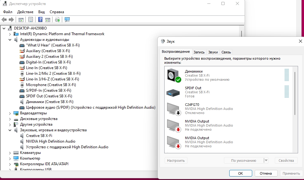 ПРОШУ Помогите. Установил вин 10. Сборка Xeon 2678v3 и мать хуанан 99TF. Всё работает норм, но нет звука! Совсем. Не видит динамики и наушники. Подключено 2 монитора по HDMI каналу. Возможно идет на них звук, но там нет динамиков. В диспетчере звука отображается только "digital audio s/pdif". Динамики не видит. Что нужно сделать, чтобы звук пошел на динамики/наушники через дже 3.5? Какие драйвера надо устанавливать? Ставил Реалтек 2.81 не помогло. Может в биосе что-то надо активировать? Видел, что передняя панель у некоторых не работает, но у меня обе панели не работают. Звук есть, но его не слышно. Слышны потрескивания только иногда.