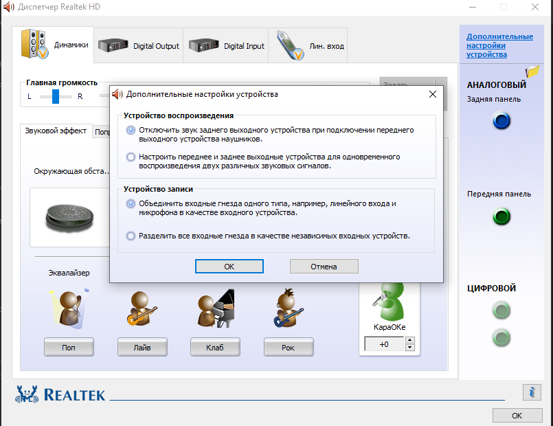 Как только я включаю Реалтек, у меня появляются помехи сильные в наушниках. Будто их не вставили, а чуть чуть прислонили. Музыки нет.