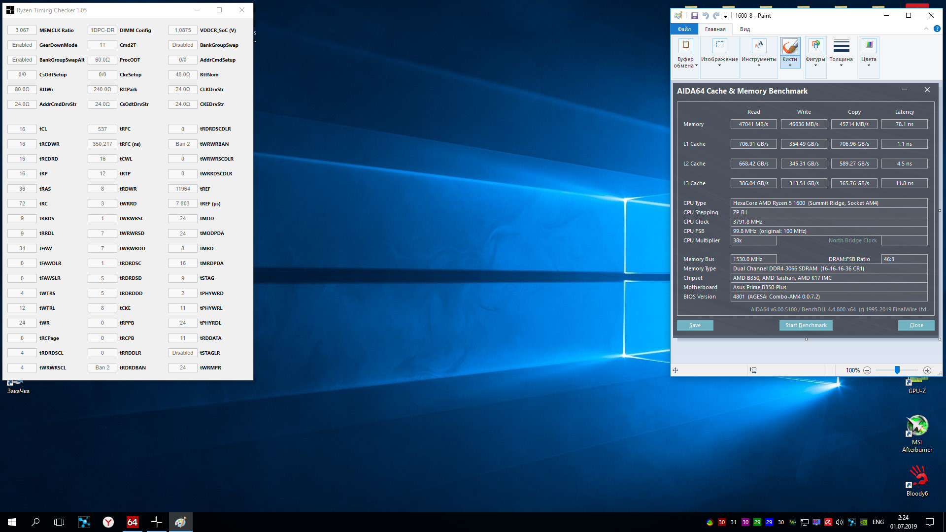 Приветствую народ хотел узнать вот эти результаты как вообще норм или нет ,проц ryzen 1600 работает на 3800 мгц при напруги 1.28v ,память на 3066 мгц она 2 ранговая на чипах самсунг фото планок есть,материнка Asus Prime B350-Plus, в целом комп работает стабильно.