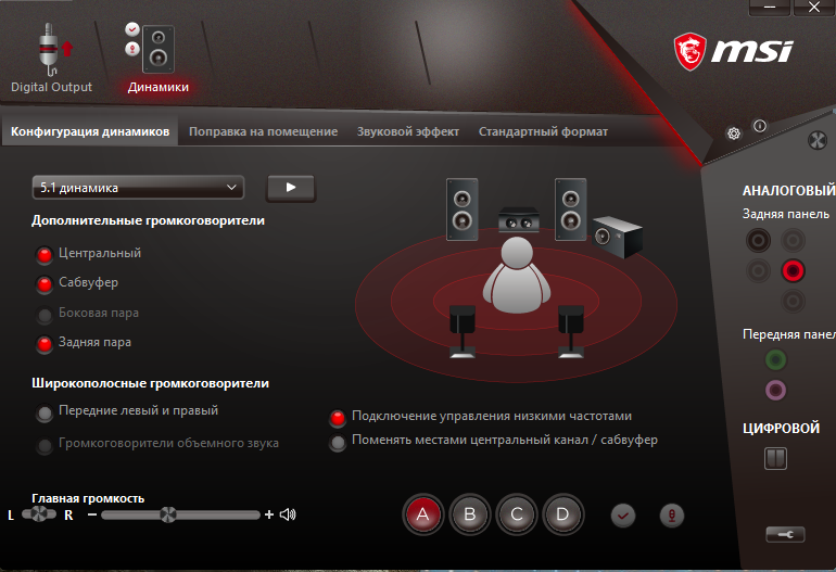 P.S. Проблема решена перезапуском службы "Windows Audio". Огромное спасибо камраду Remarc за данную наводку. Для понимания сабвуфер и колонки подключены в разные разъёмы.