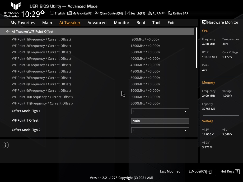 Подскажите в профильной TUF V/F Curve в BIOS отображается так