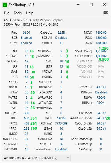 Я как бы на встройке не играл, но два момента: 1. Проверяли память чем? Что еще за мемтест? Если это не TM5, то настоятельно рекомендую скачать вместе с конфигами 1usmusa/antы и прогнать циклов 10 первого, и 3 - второго. В ветке по DDR для AM4 найдете. 2. Не нужно лезть ни в какие настройки выделения памяти. Ну и пробуйте Vsoc 1.25-1.3V, но сперва память в TM5 на стабильность. Что это за тайминги, xmp?