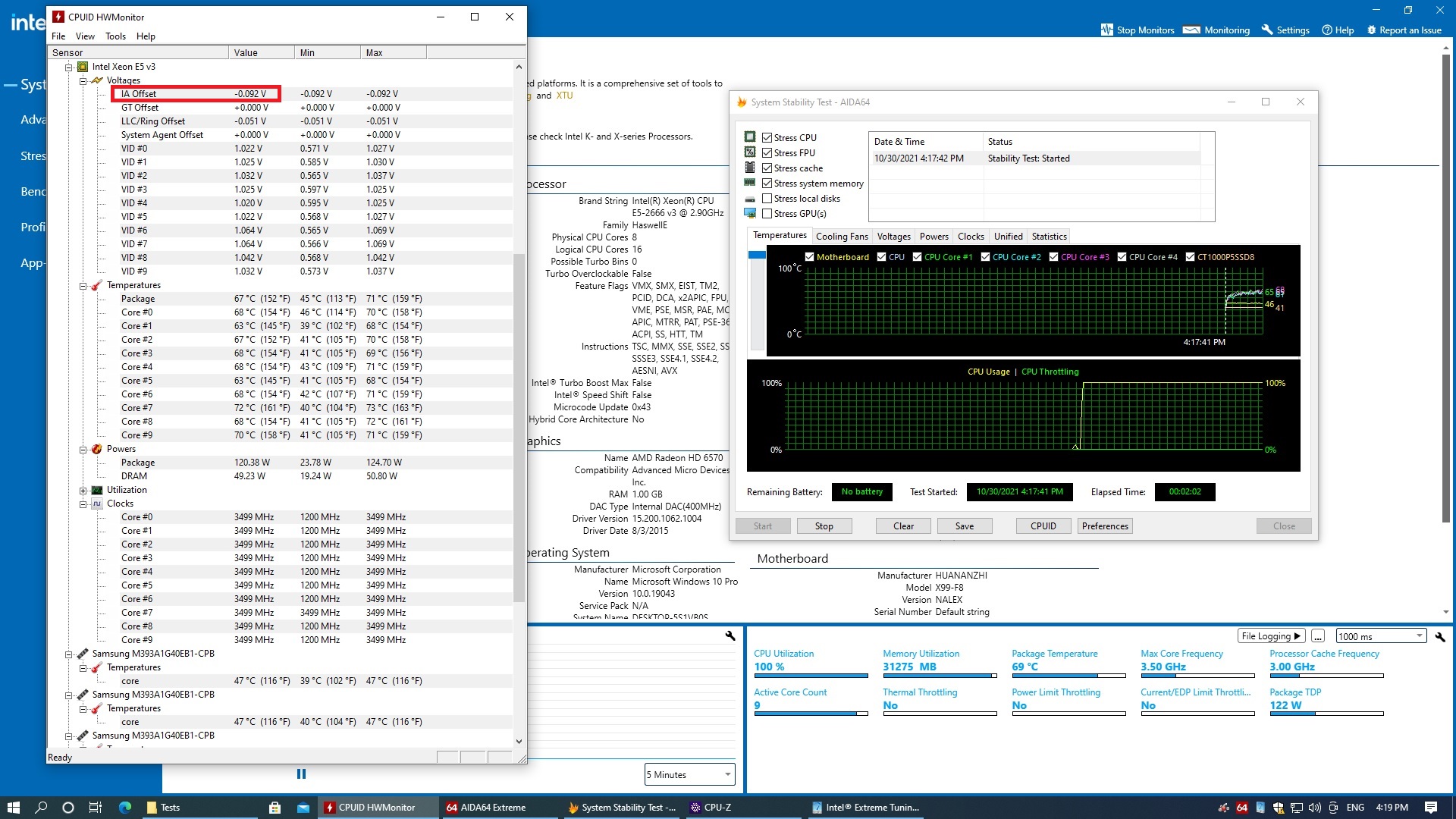 Заказывал тут для коллекции E5-2666v3, сегодня потестировал его на Huananzhi X99-F8. Удерживает максимальную частоту 3.5GHz с AVX2 только при андервольтинге -90мв, но при таком аццком андервольтинге он иногда в простое в синьку впадает. Приходится выставлять -80мв, а в этом случае при стресс-тестах с AVX2 частота до 3.4GHz проваливается. Т.е. мне попался плохой экземпляр.