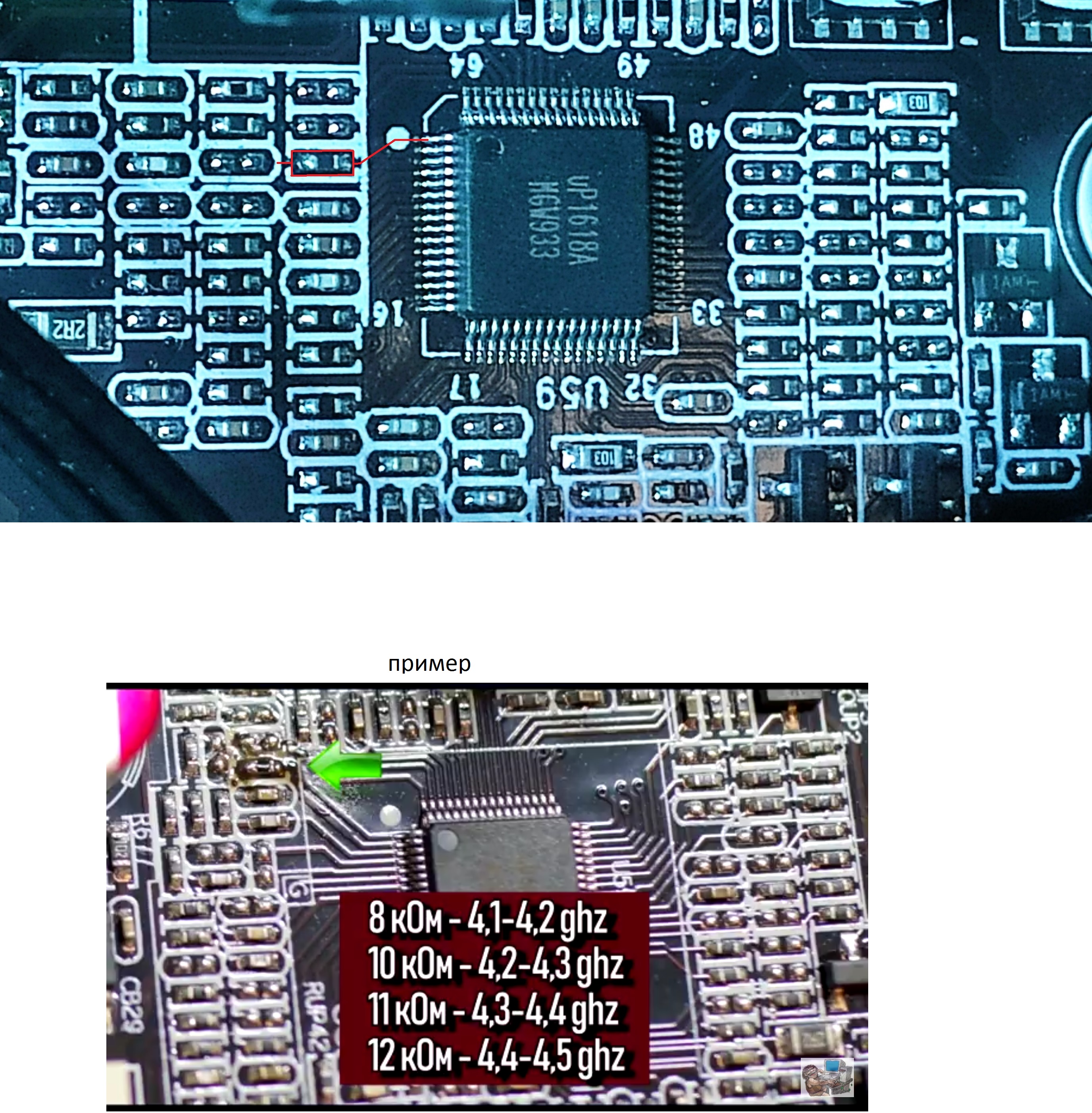 в шапке есть, но не полная аналогия, вот по дорожкам от чипа распределение одинаково идет? т е резистор новый впаять туда куда я выделил или я не так понял?