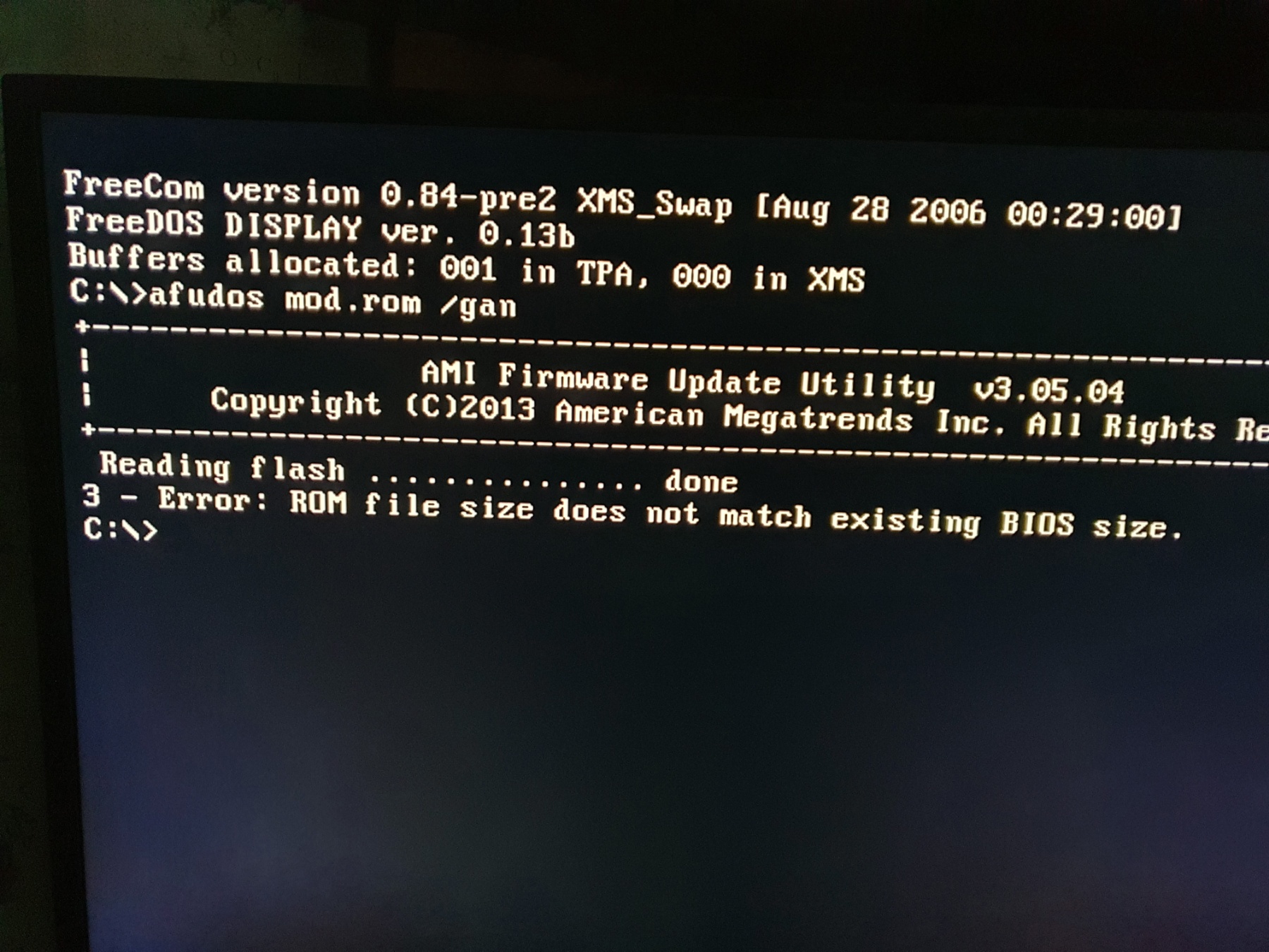 Хорошо, а такой вопрос: конкретно эта плата никак не хочет через FPT, только afudos. Аfudos соответственно ругается на fpt'шный bin, не шьёт им. Где взять мод биос afudos?