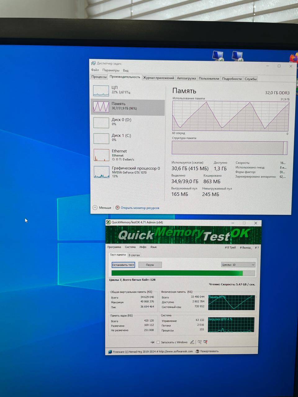 Что уже пробовал: - стандартный тест винды с перезагрузкой, один раз прошел без ошибок, один раз завис на 21% и все. - memtest86, сказал все норм