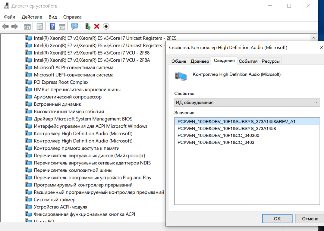Да вот эти самые драйвера пробовал еще месяц назад ставить. В диспетчере ус-в показывает Реалтек, но оно под знаком. Не могу по ИД найти и в драйвер паке нету. Из биоса с помошью Азалии вырубается звук, значит в теории просто проблема с драйверами. Может 10 такая, не пойму. Сетевая карта то работает, то перестает работать за ночь. Тоже чертовщина. Помогало вытаскивание оперативки. Вот так оно выглядит со всеми драйверами, чтобы я не ставил. Второй звук я так понимаю это нвидиа драйвера gtx 970