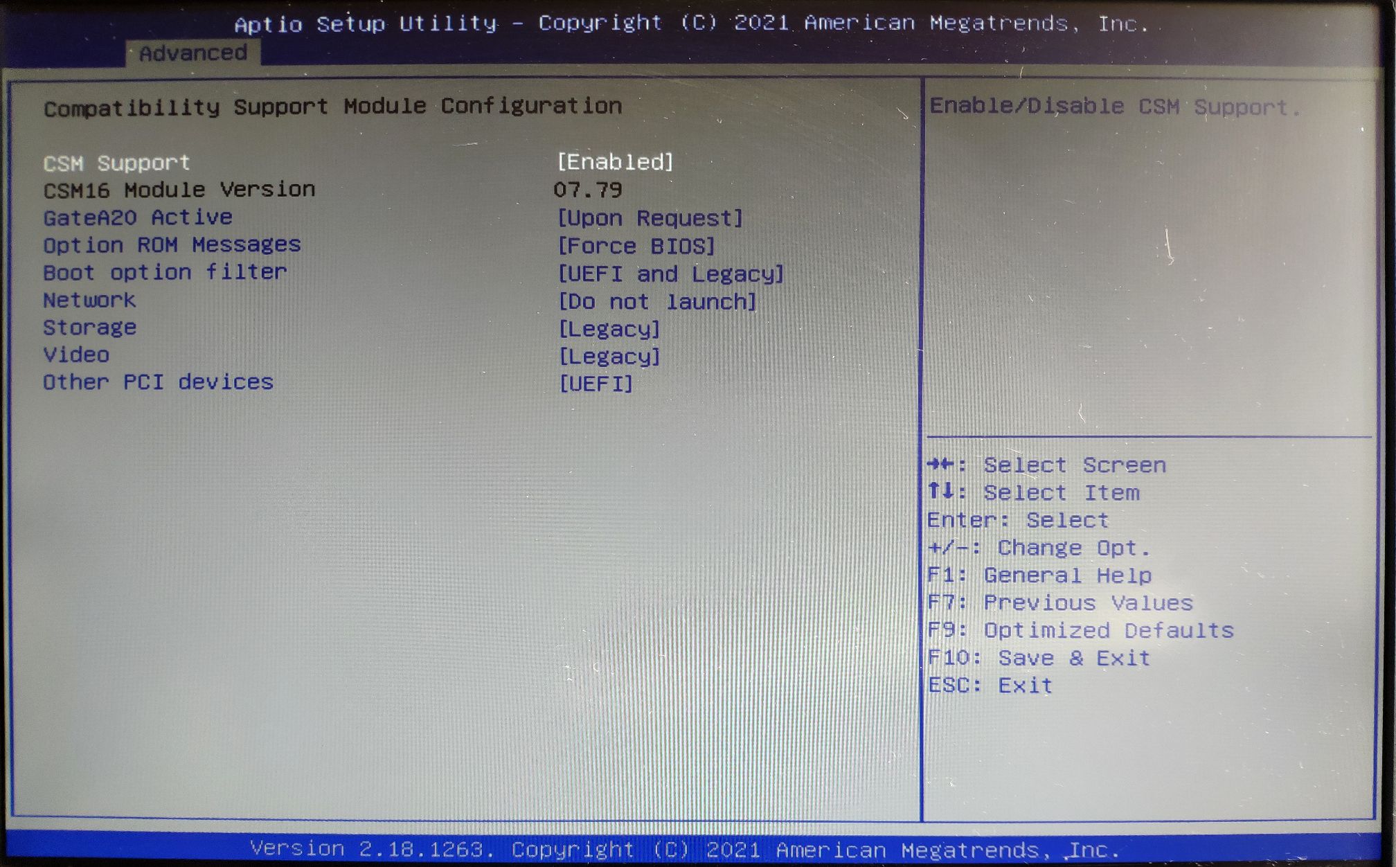 Уже подсказали, что на майском биосе 2020 года версия CSM та же 07.79... странно, что iEngineer не вырезал CSM на новом биосе для новых ревизий x99-F8 c nuvoTon NCT5567D-B... https://github.com/BIOS-iEngineer/HUANANZHI-X99-F8-2021