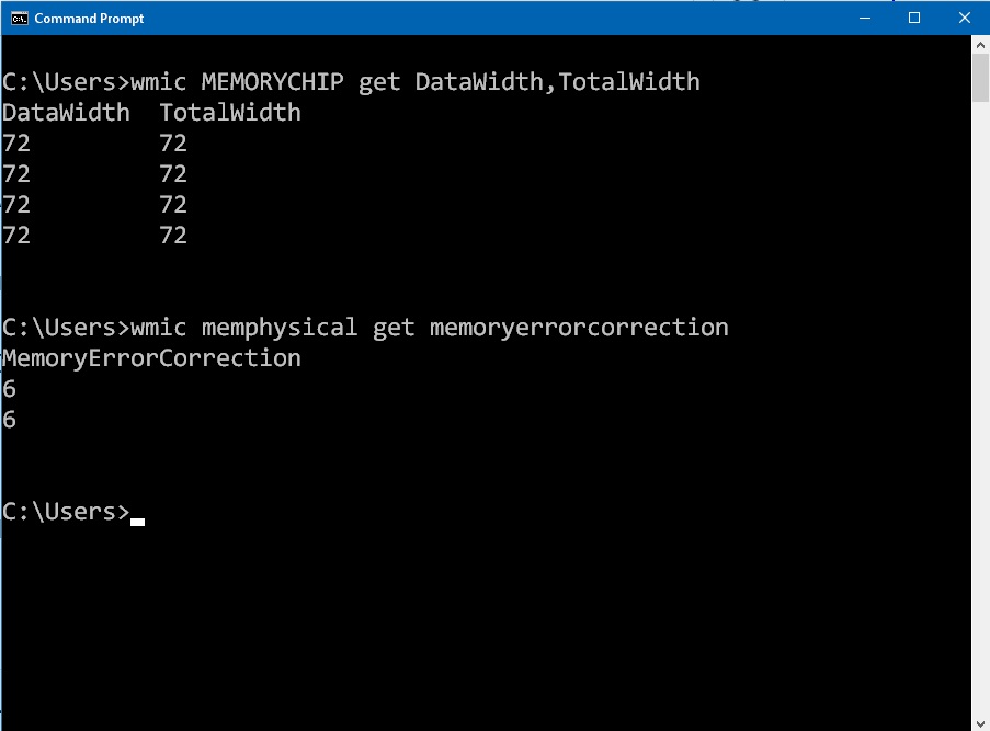 C:\Program Files\Far Manager>wmic memphysical get memoryerrorcorrection MemoryErrorCorrection 3 3