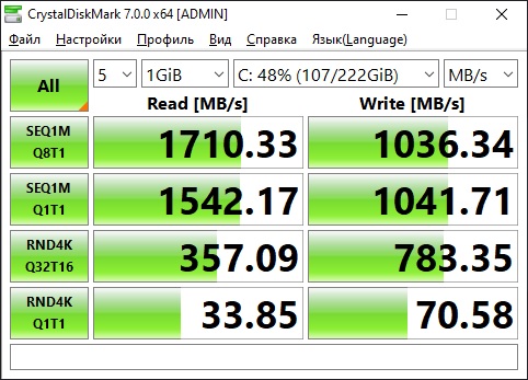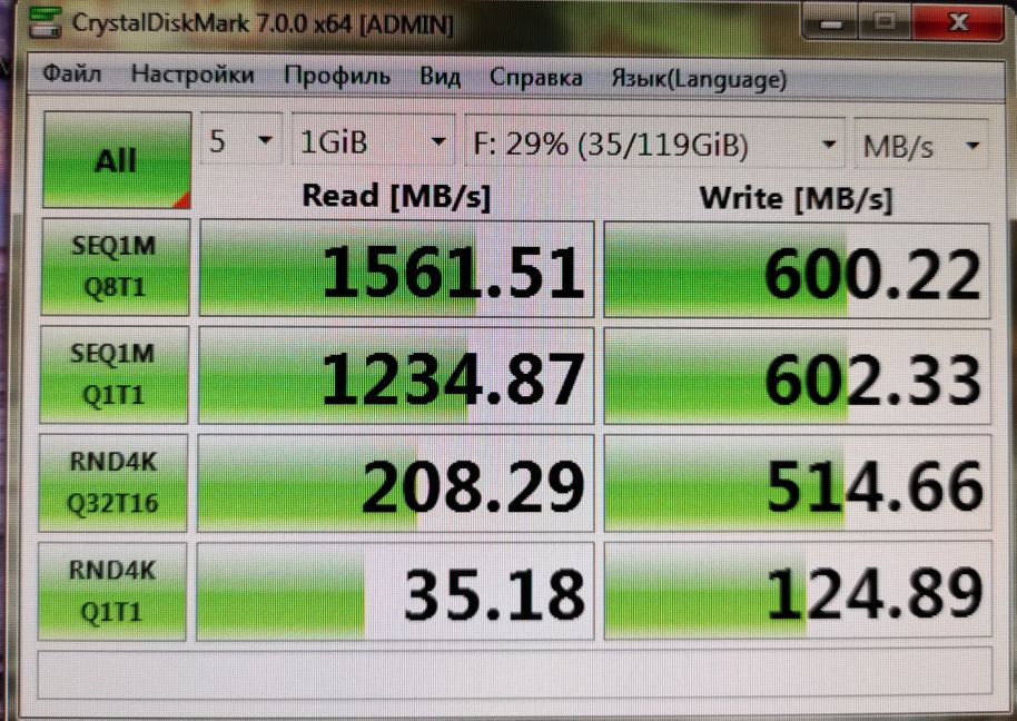 Перечитал много инфо, но так и не нашел как заставить и можно ли это изменить и вообще может просто не корректное отображение. Для nvme по CrystakDiskMark стандартным петерном значения SEQ1M Q8T1 1560/600, RND4k Q1T1 35/124.
