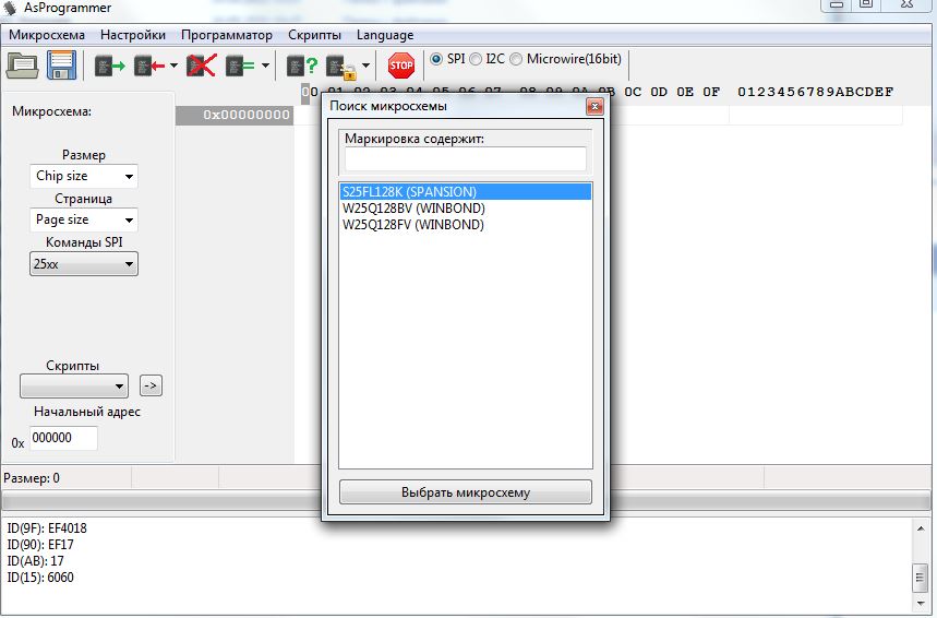Вручную выбрал чип... Вроде читается что-то. Так и должно быть?