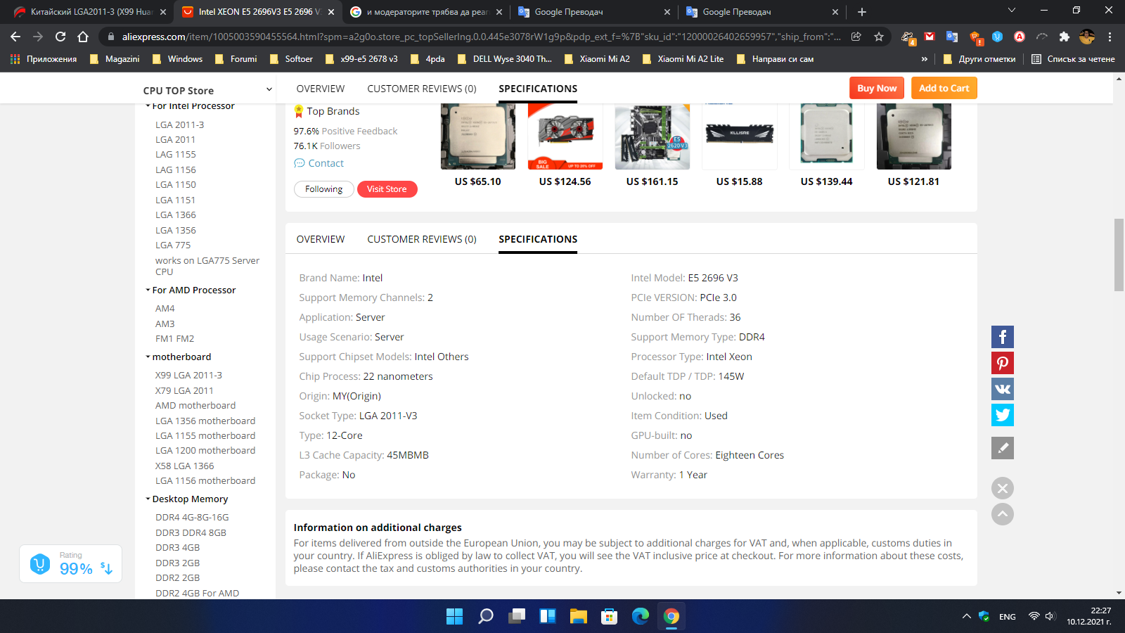 да, и вправду E5-2696v3 у нескольких продавцов $150, даже дешевле чем E5-2699v3