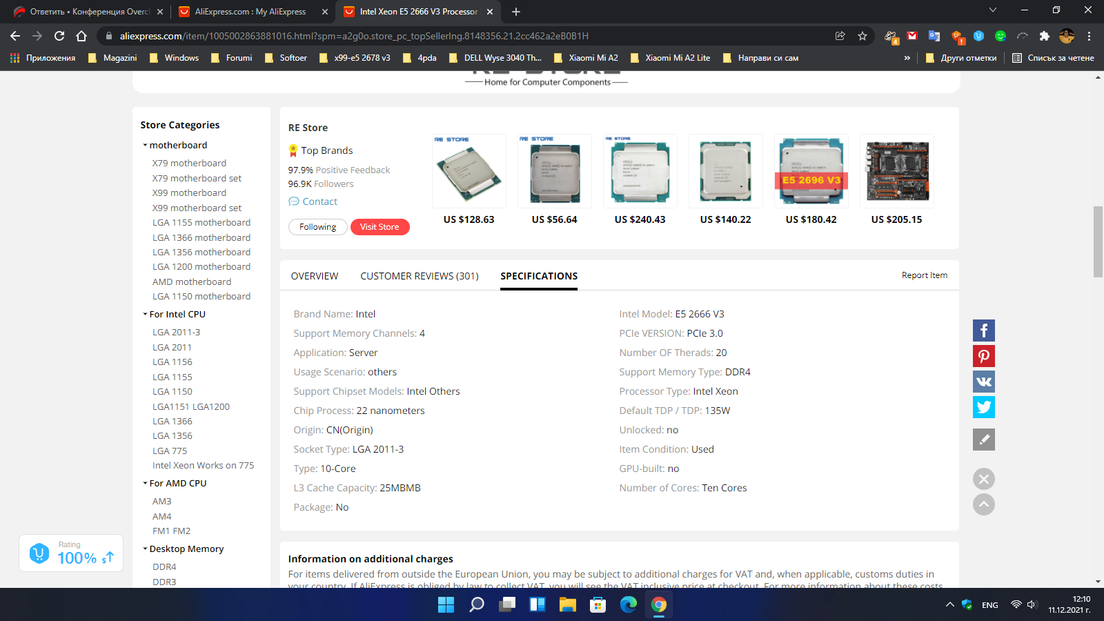 2.VEugene Продаю комплект вот такой: https://aliexpress.ru/item/100500314818 ... 1667062299 Только камни 2666 v3 Состав: HUANANZHI X99-F8D LGA2011-3 Xeon E5 2666 v3 - 2 шт. Кулера для CPU - 2 шт. 8G DDR4 2133 REG ECC память - 2 шт. 128G M.2 NVMe SSD (китайский) - 1 шт. Комплект был запасной, куплен целиком мной лично, заменены в нем только камни (изначально были 2690 v3) Все проверено, запускается. Цена 22000 руб. В Москве.