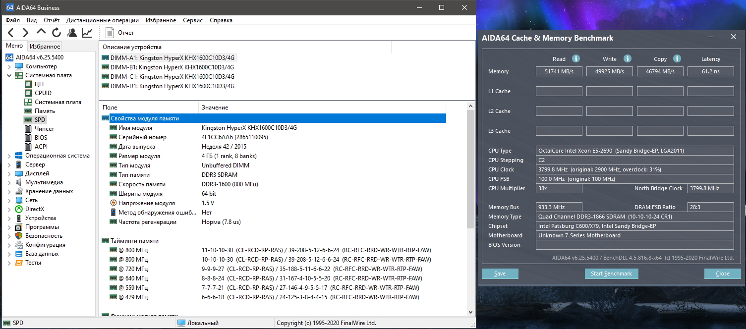 Приветствую. Сегодня решил выжать из оперативки максимум) Материнка у меня huananzhi x79 zd3 v3.6D перепрошитая, память hyperX Fury 1600 4x4Gb. Вобщем минимальные стабильные тайминги на частоте 1866 получились такие: 10-10-10-24-4-167-4-4-4-4-15. При этом всё отлично работает, любые стресс тесты на ура, температура планок минимальная, чтение 52Gb/s, запись 50Gb/s, копирование 47Gb/s, латентность 61. Хотелось бы узнать ваше мнение насколько это адекватные значения? тк я не пользовался таблицами, а исходил из принципа найти минимальные рабочие значения(пол дня убил на перебор)(=